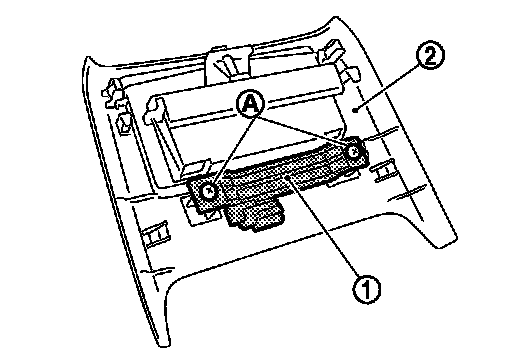 3. Remove the inside key antenna mounting screw (A), and then remove inside key antenna (console) (1) from console rear finisher (2).