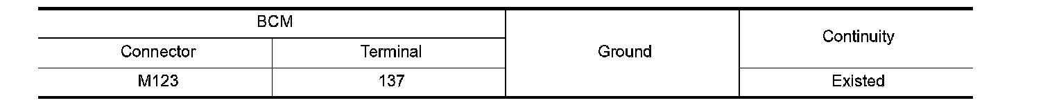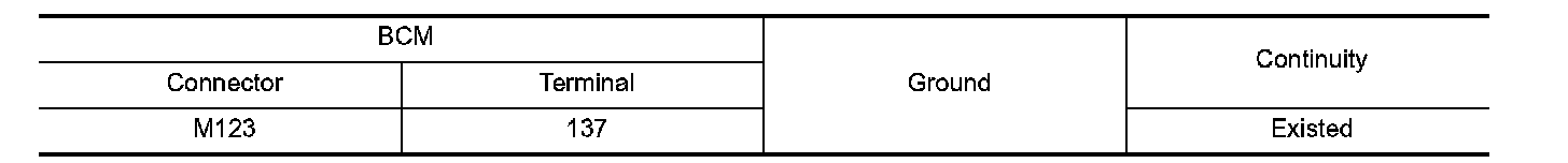 2. Check continuity between BCM harness connector and ground.