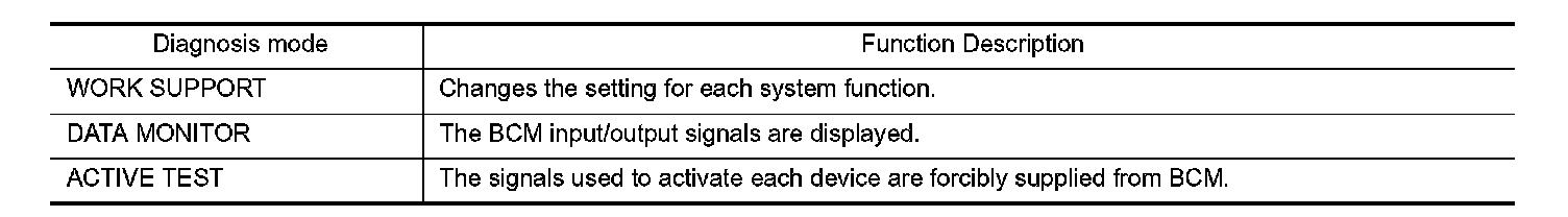 CONSULT-III performs the following functions via CAN communication with BCM.