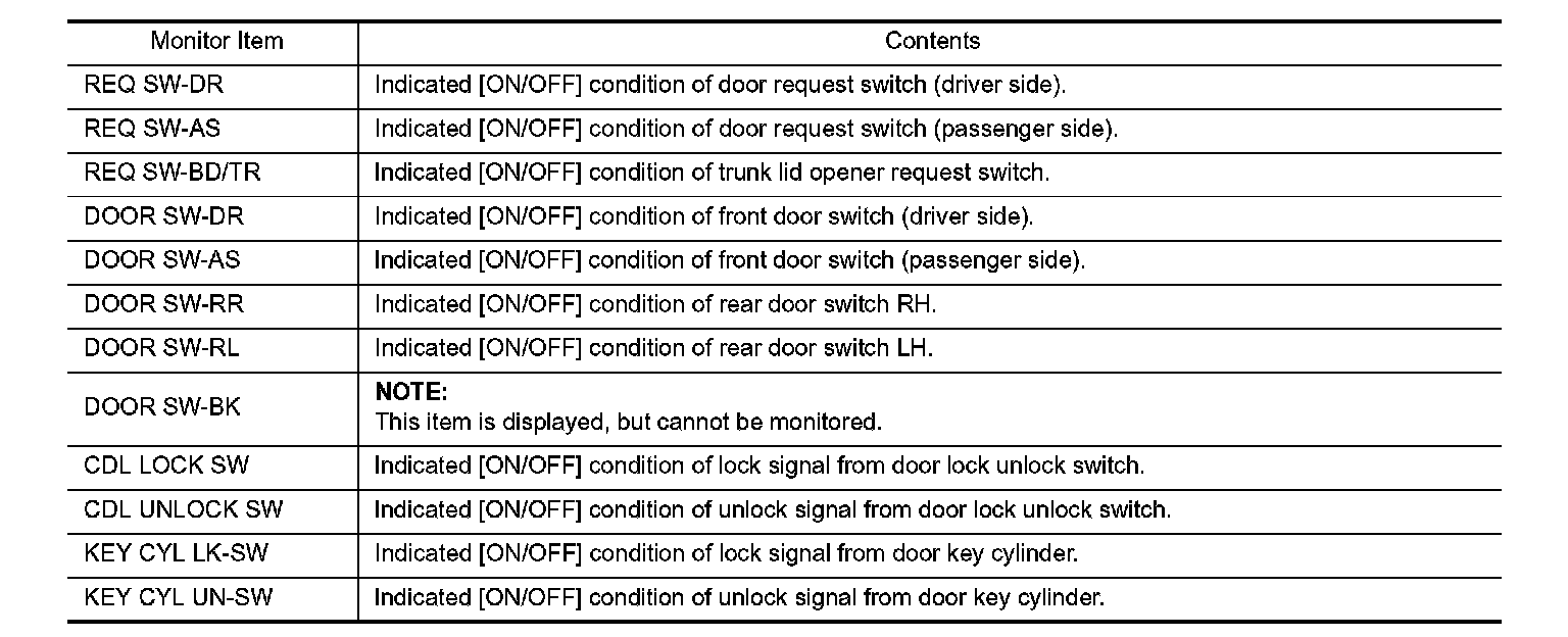 CONSULT-III Function (BCM - Door Lock)