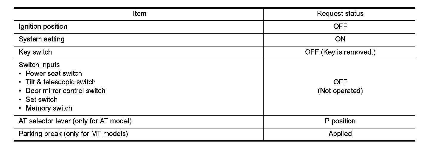 When unlocking doors by using Intelligent Key or driver side door request switch, the system performs memory operation, exiting operation then entry operation.