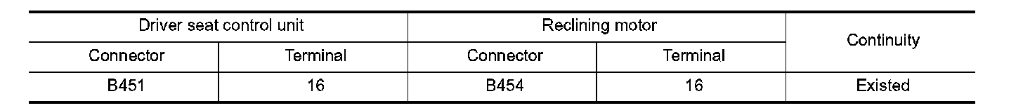 3. Check continuity between driver seat control unit harness connector and reclining motor harness connector.