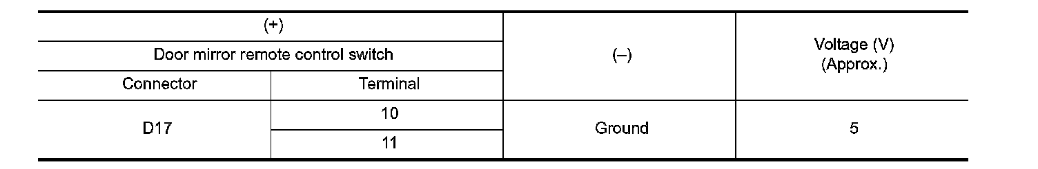 Check door mirror remote control switch (changeover switch). Refer to Component Inspection.