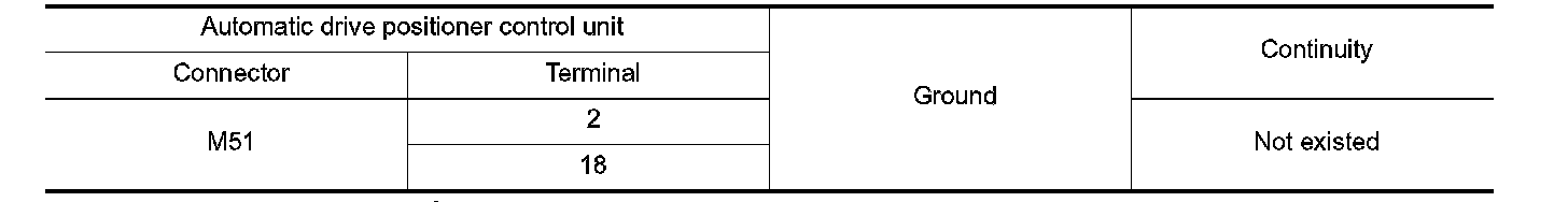 4. Check continuity between automatic drive positioner control unit harness connector and ground.
