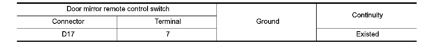 2. Check continuity between door mirror remote control switch harness connector and ground.