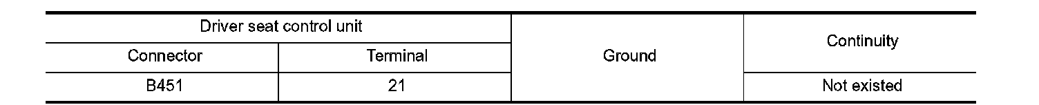 4. Check continuity between driver seat control unit harness connector and ground.