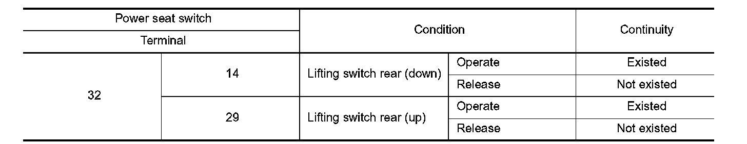 3. Check continuity between power seat switch terminals.