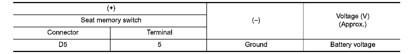 Check voltage between seat memory switch harness connector and ground.
