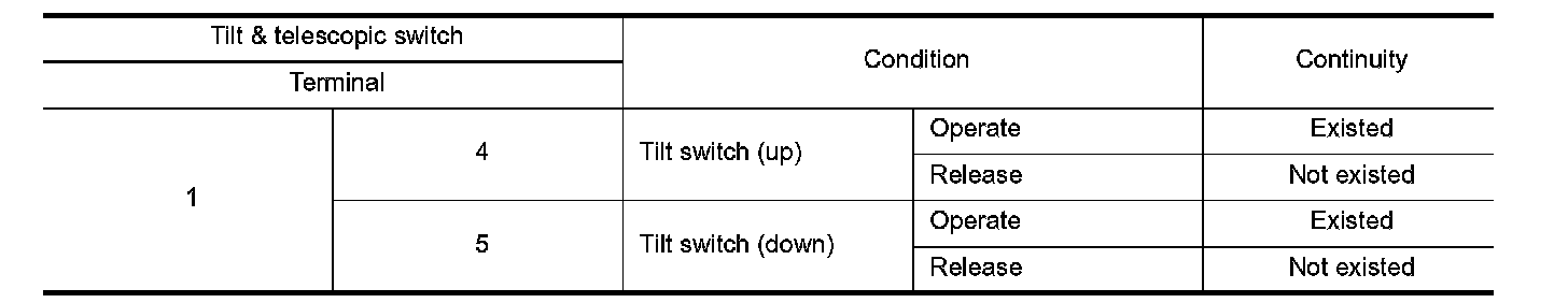 NO - Replace tilt & telescopic switch. Refer to Service and Repair.