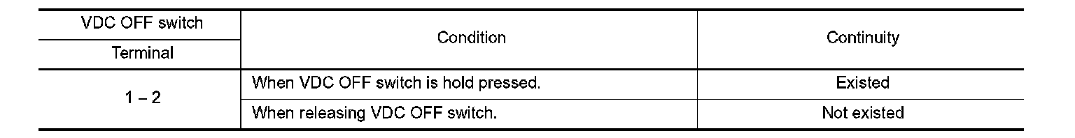 3. Check continuity between VDC OFF switch connector terminals.