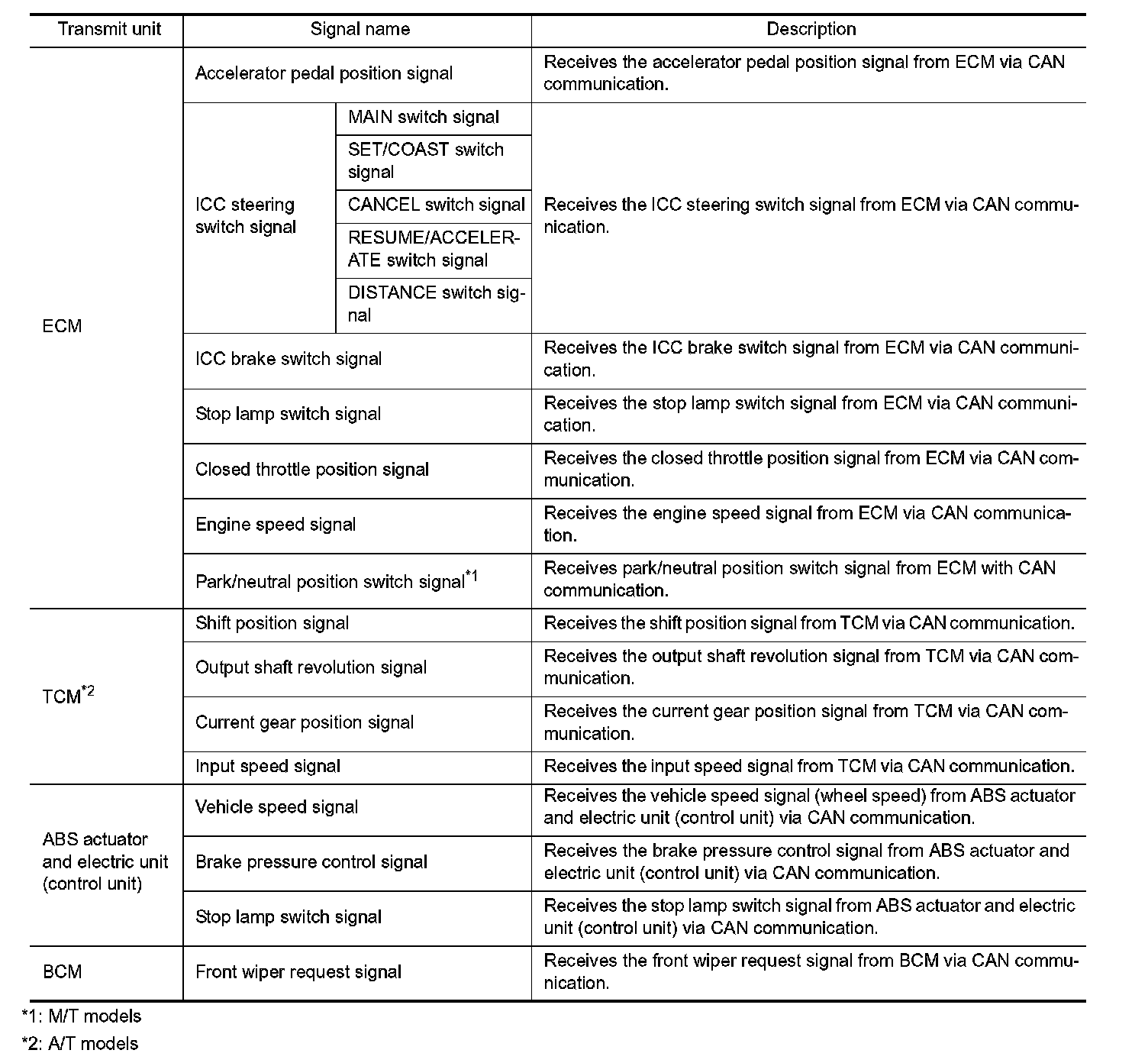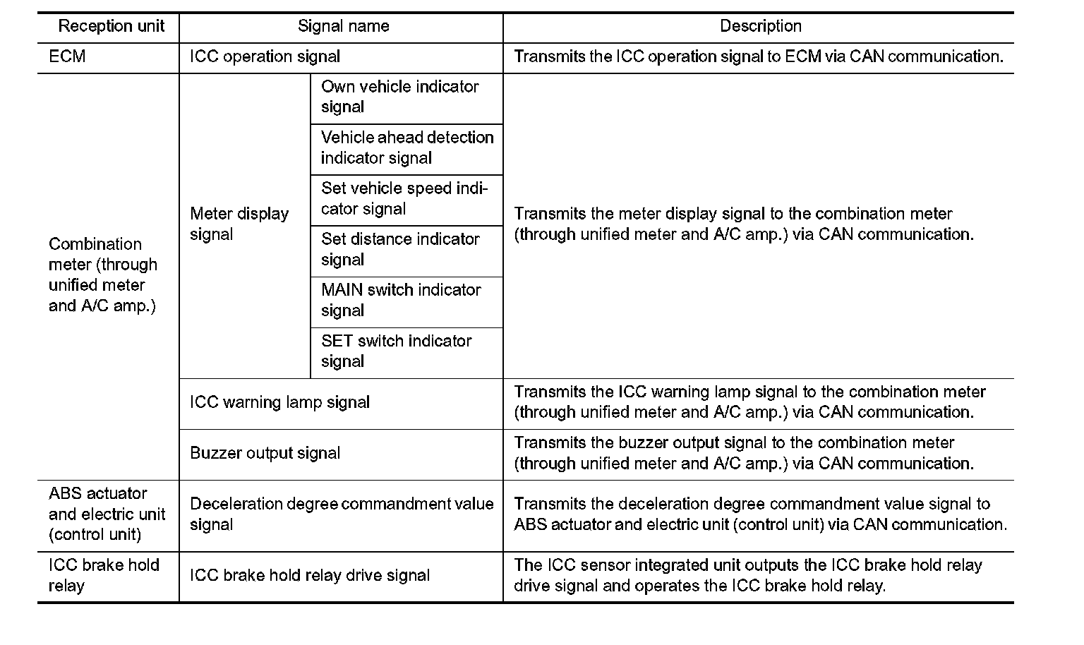 ICC SENSOR INTEGRATED UNIT INPUT/OUTPUT SIGNAL ITEM