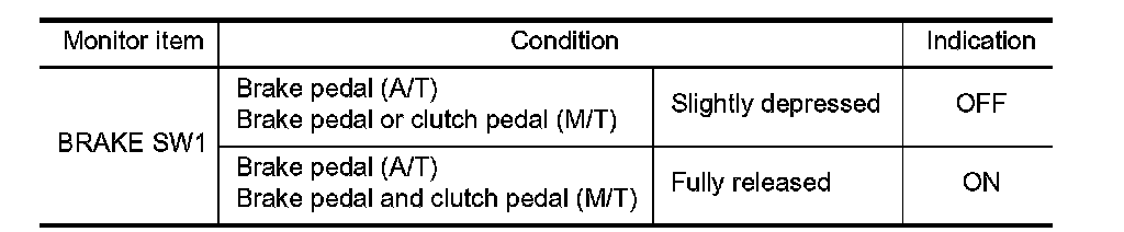 2. Select "BRAKE SW1" in "DATA MONITOR" mode with CONSULT-III.