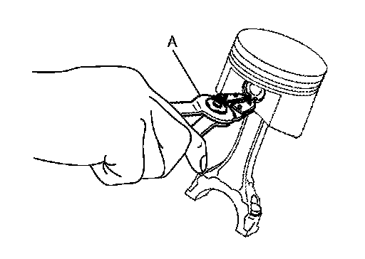 10. Using a piston ring expander (commercial service tool) (A), install piston rings.