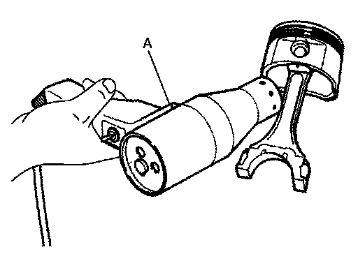 - Ensure the oil hole (A) on connecting rod and that on the corresponding bearing are aligned.