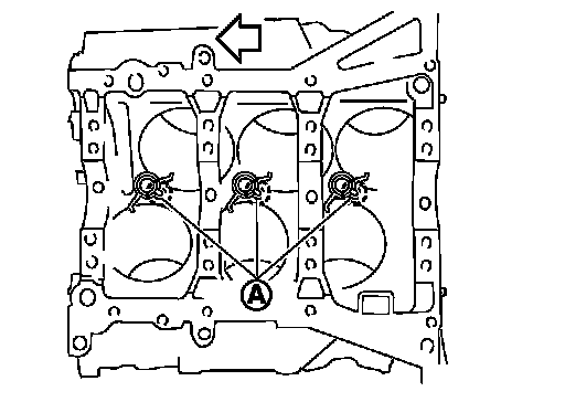 - Insert oil jet dowel pin (A) into cylinder block dowel pin hole, and tighten mounting bolts.