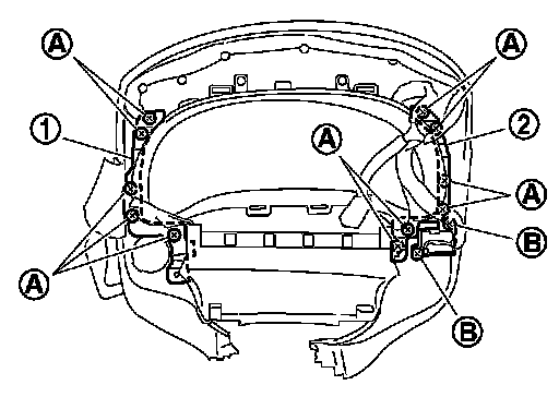 2. Remove screws (A) and remove bracket RH (1), LH (2).
