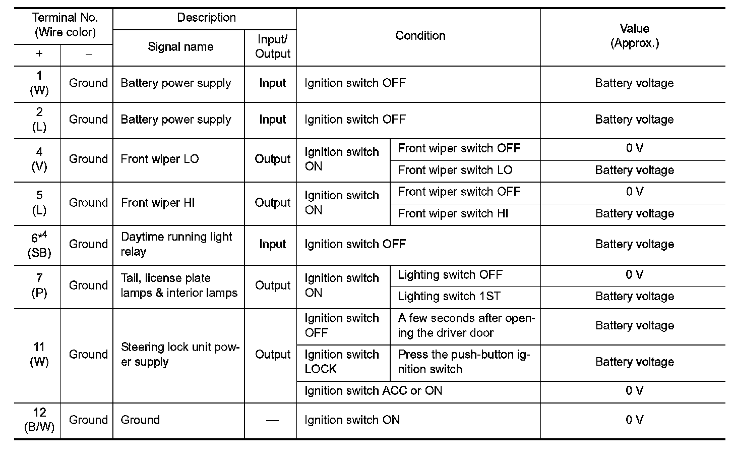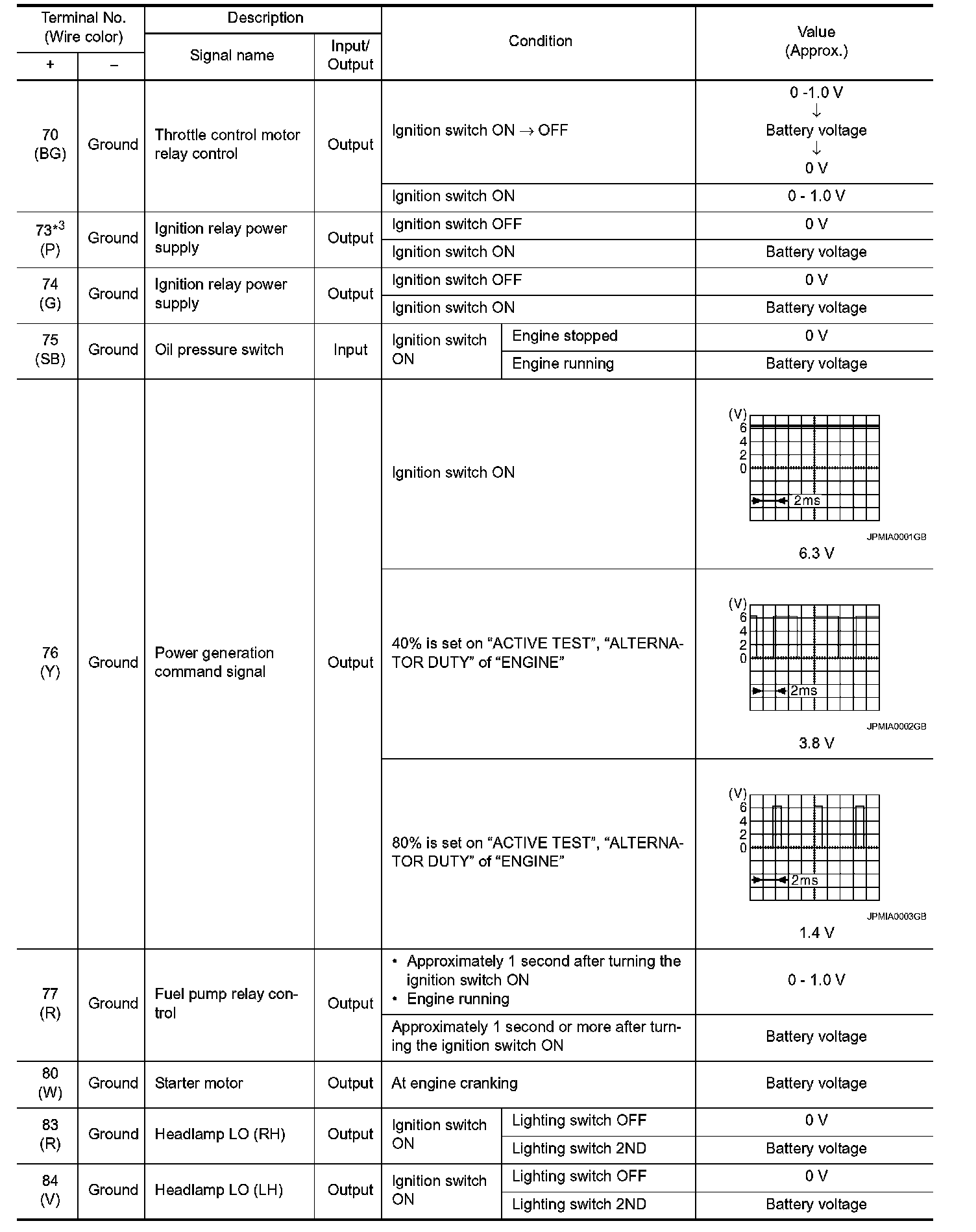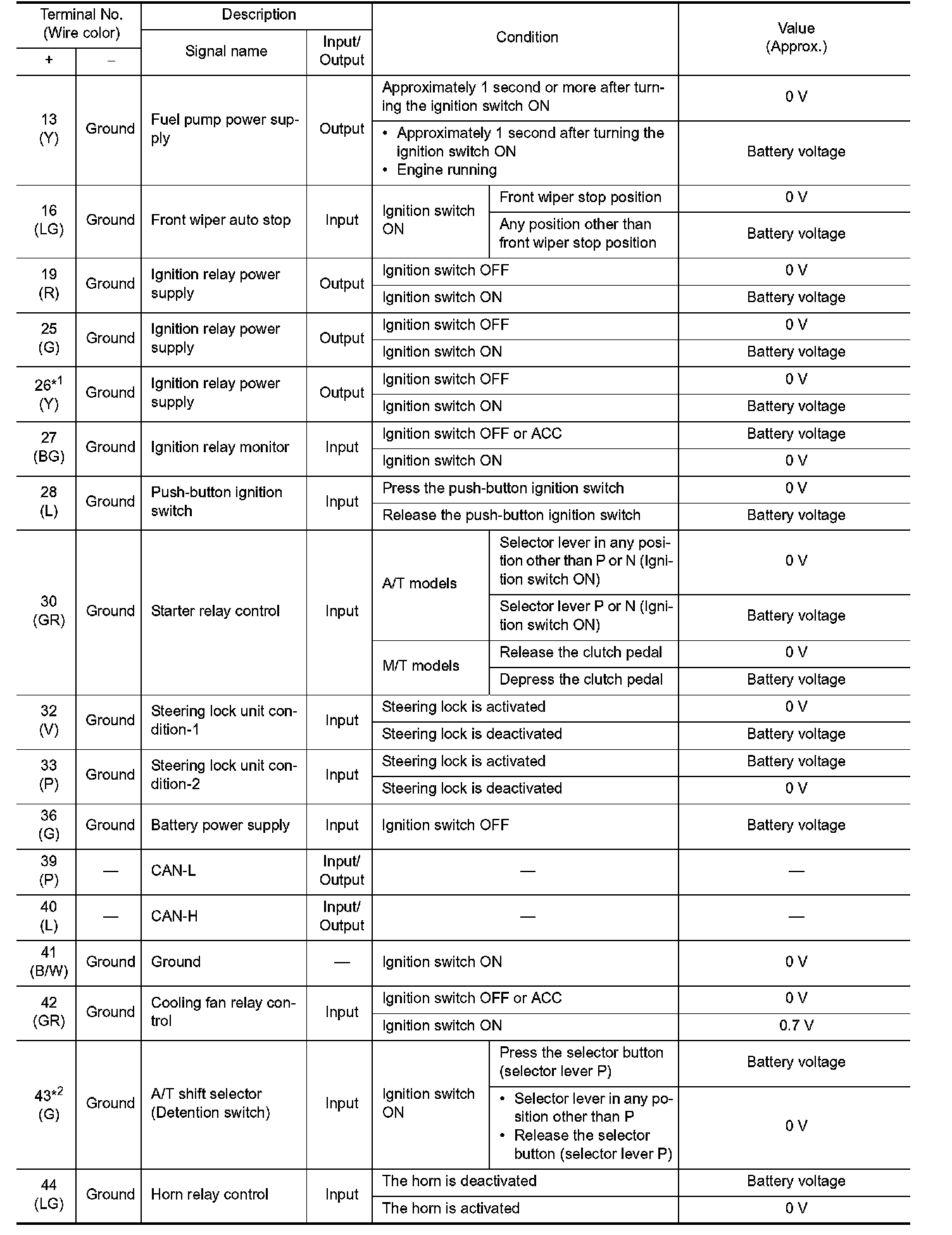 Pinout Values and Diagnostic Parameters