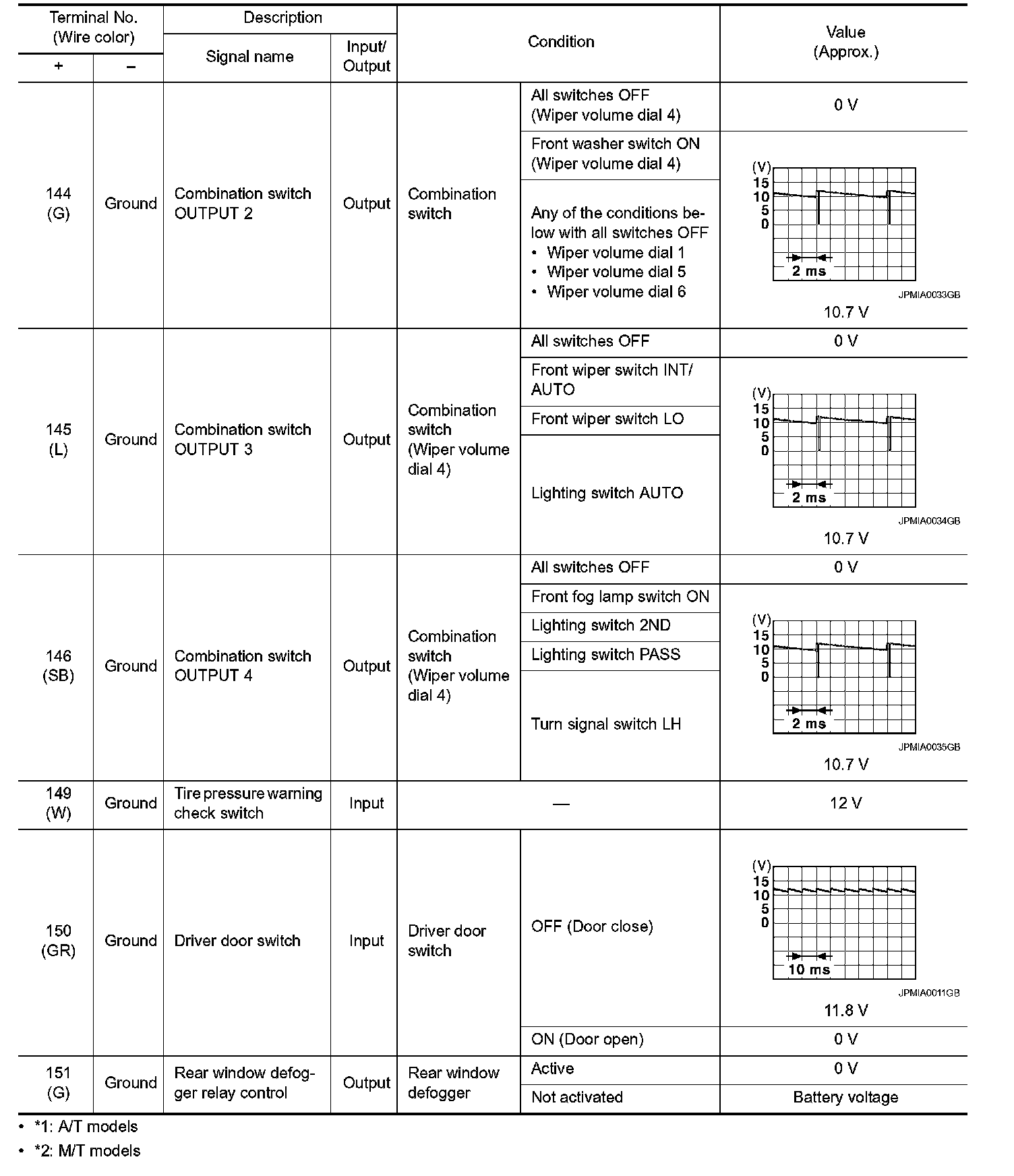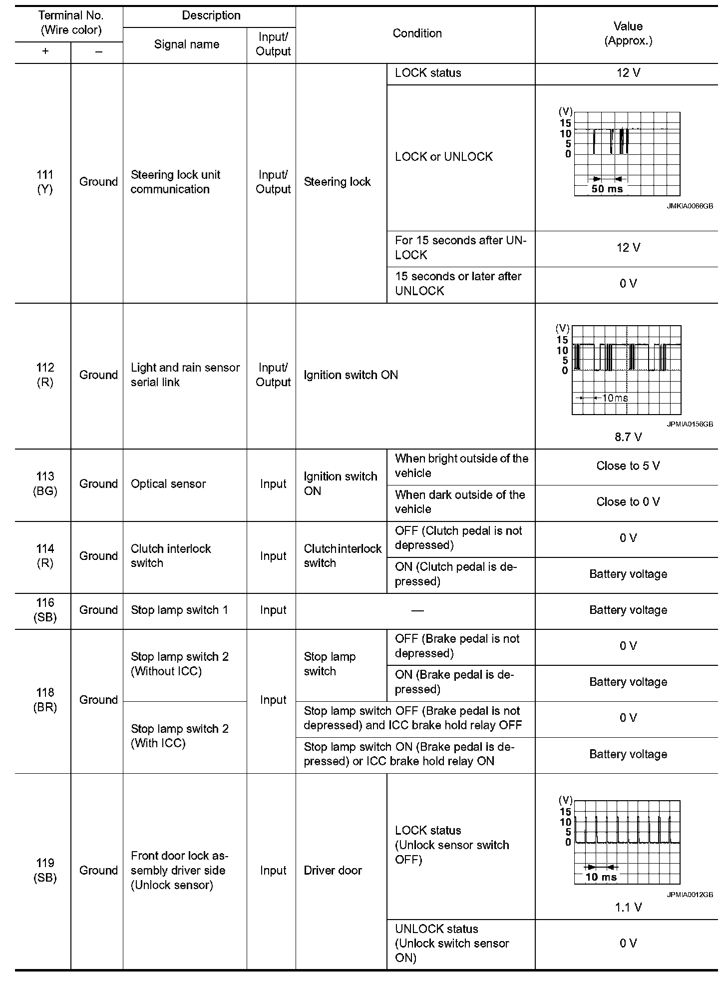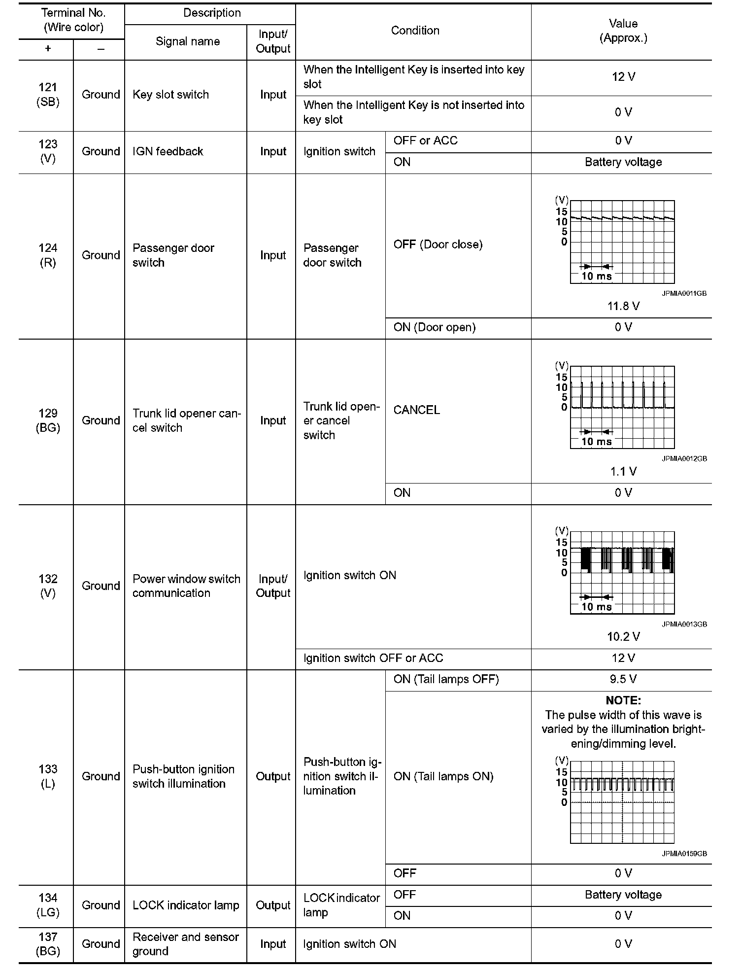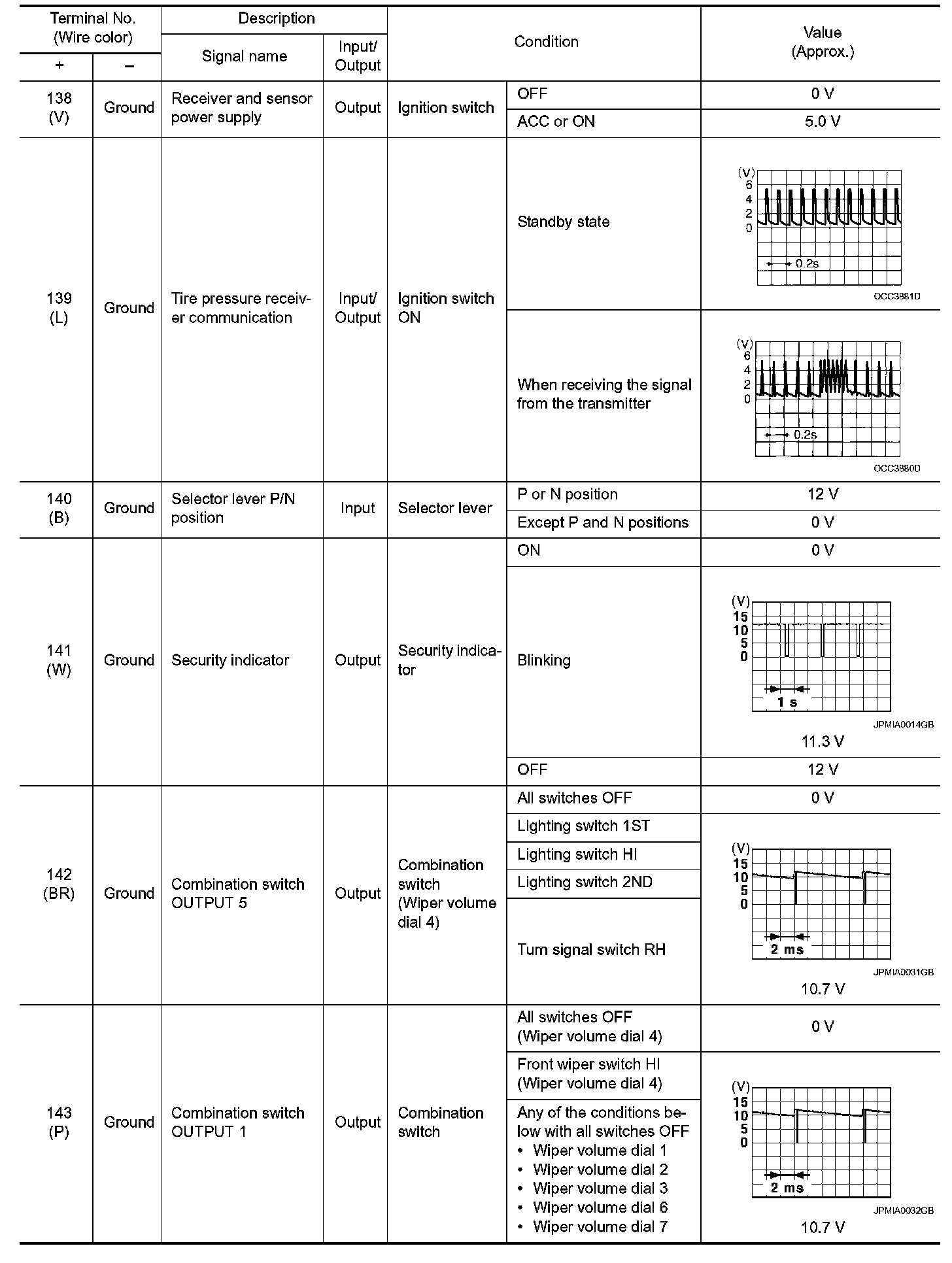 Pinout Values and Diagnostic Parameters