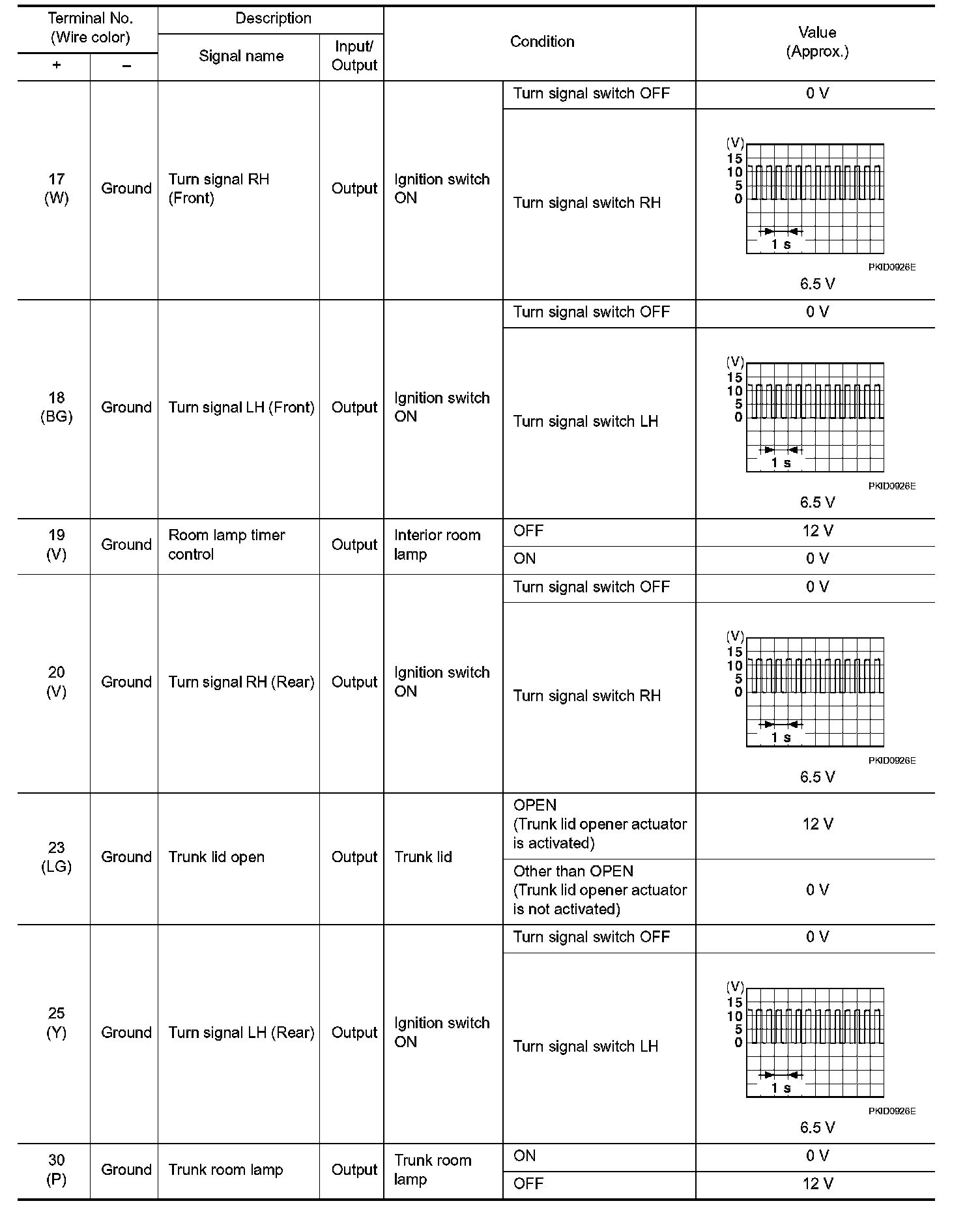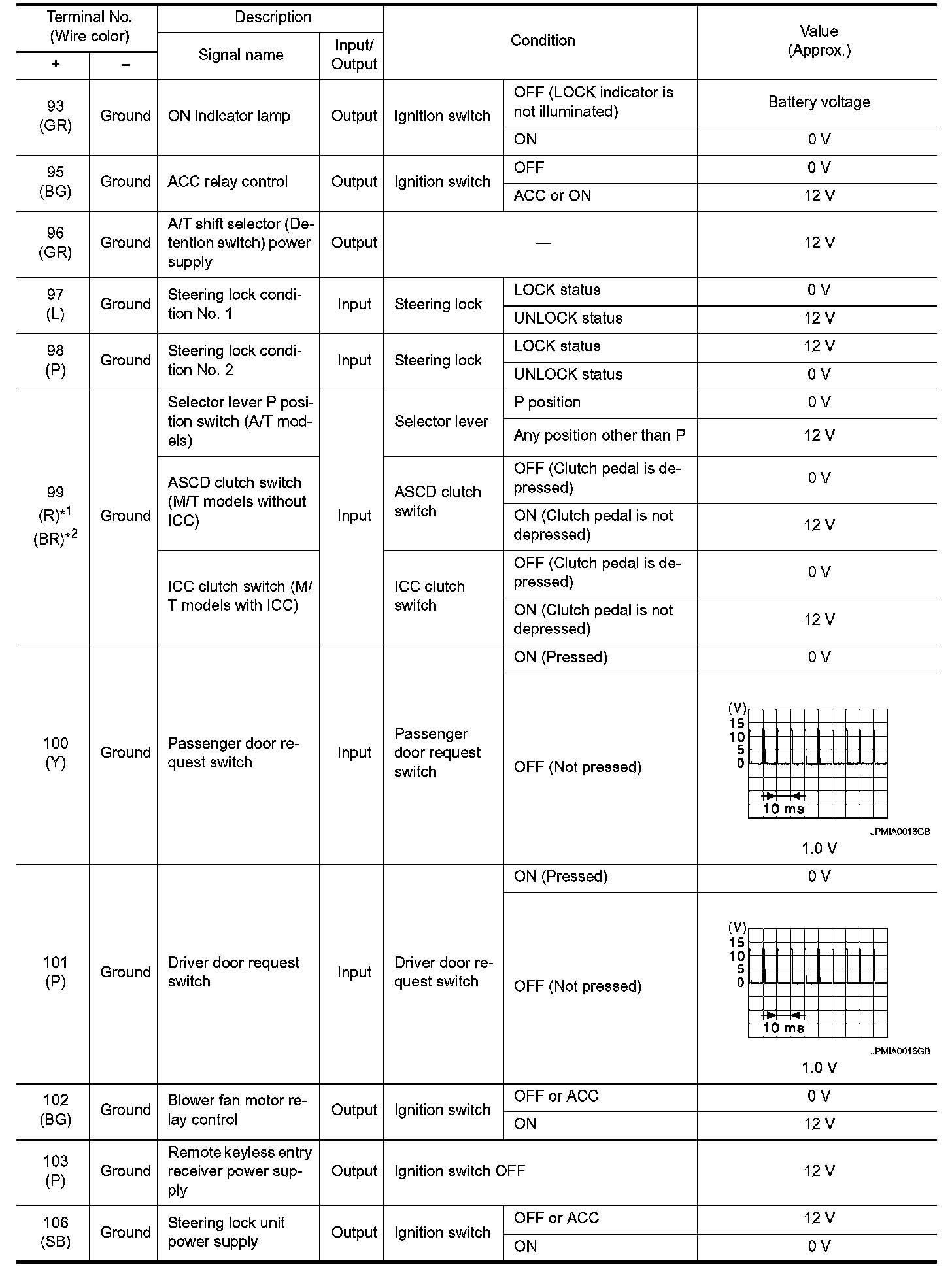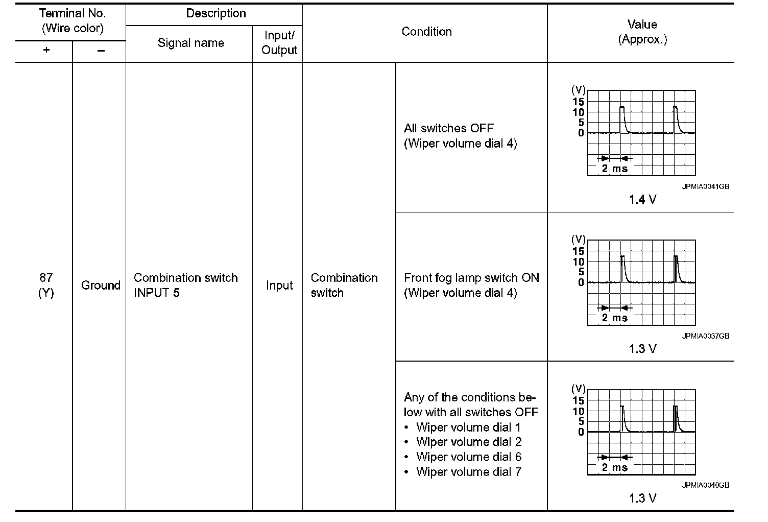 Pinout Values and Diagnostic Parameters