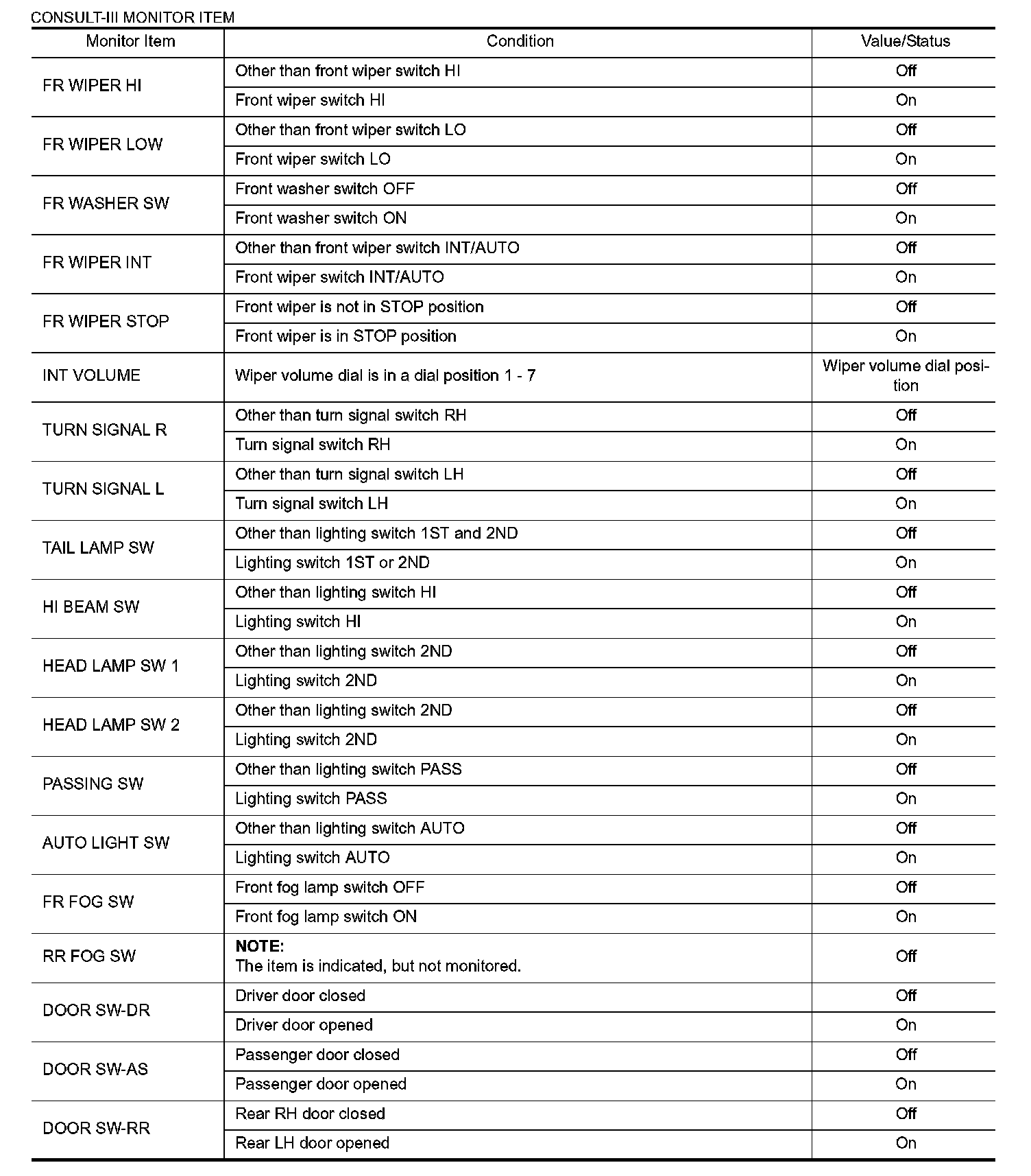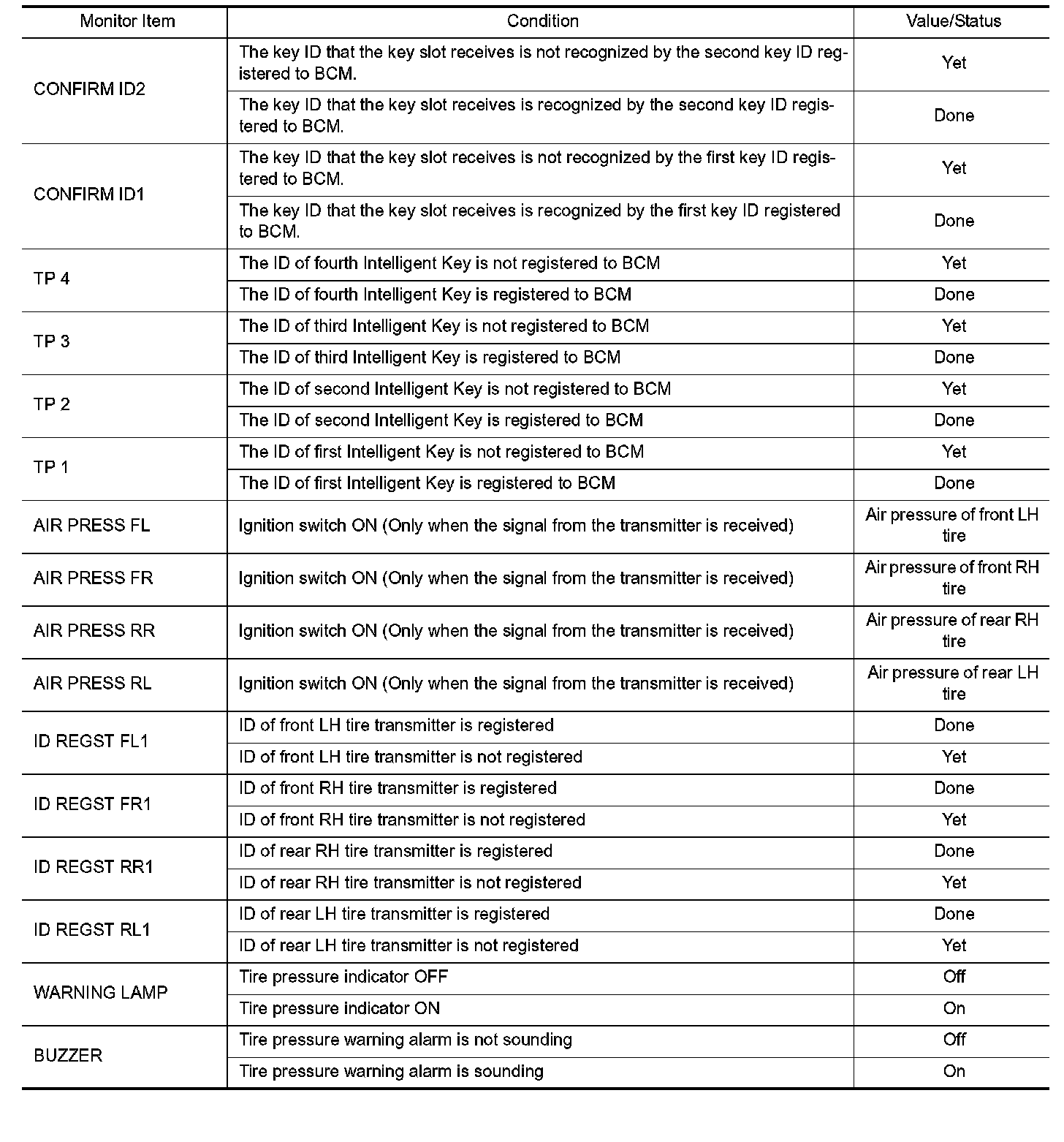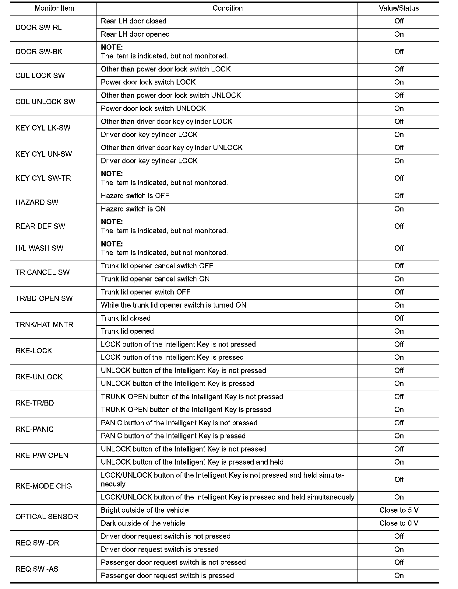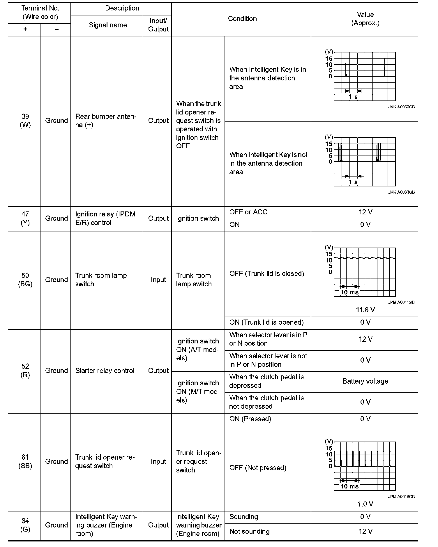 Pinout Values and Diagnostic Parameters
