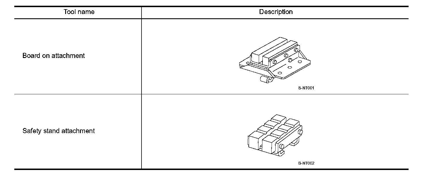 - Since the vehicle's center of gravity changes when removing main parts on the front side (engine, transmission, suspension etc.), support a jack up point on the rear side garage jack with a mission jack or equivalent.