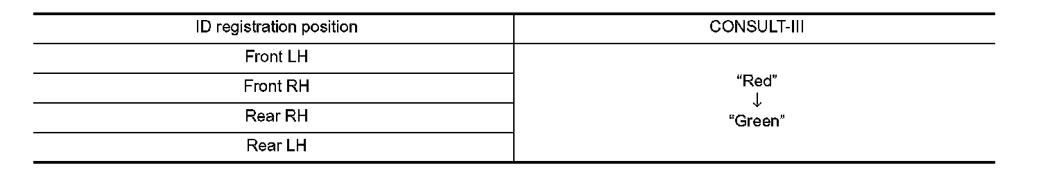 Perform the ID registration procedure starting from the vehicle front left wheel, then repeat the procedure in the order of the front right wheel, rear right wheel, and rear left wheel.