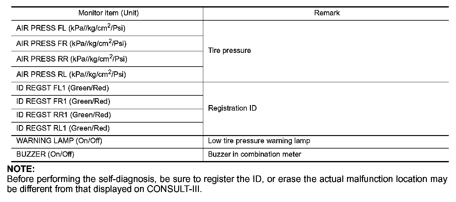 AIR PRESSURE MONITOR : CONSULT-III Function (BCM - AIR PRESSURE MONITOR)