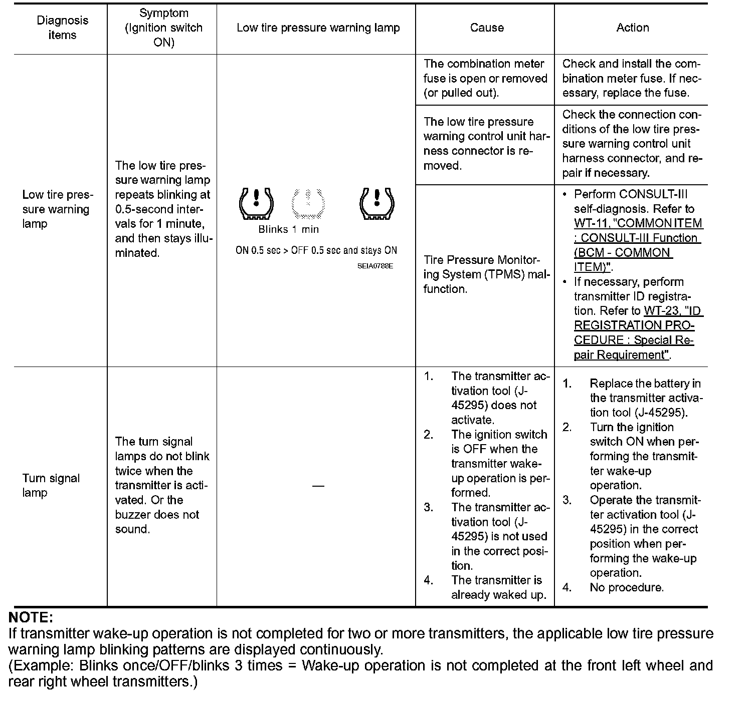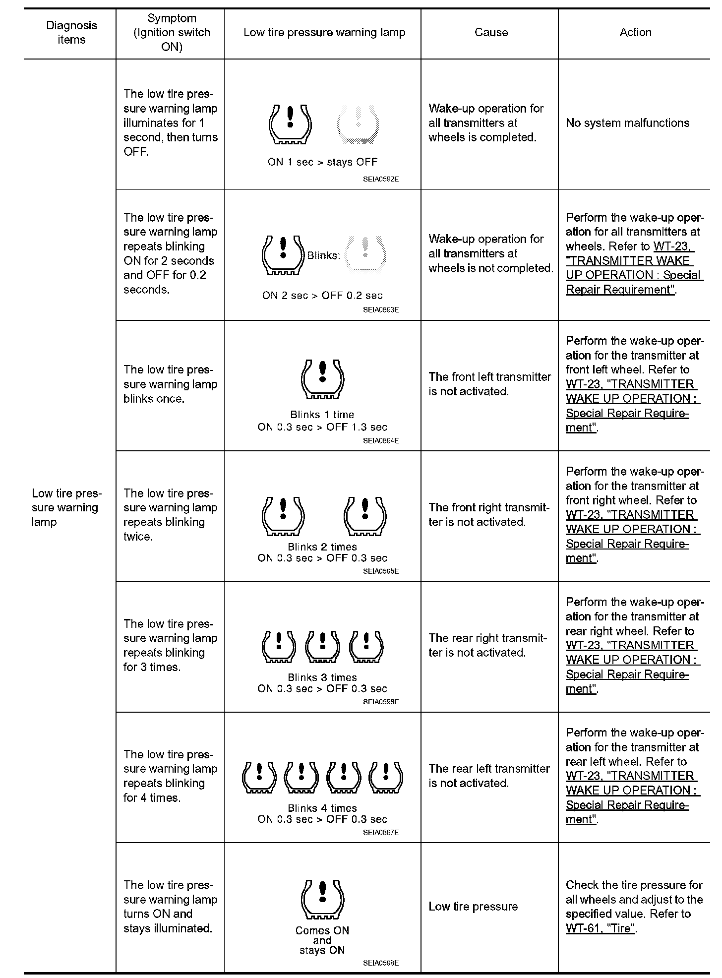 LOW TIRE PRESSURE WARNING LAMP SYMPTOM CHART