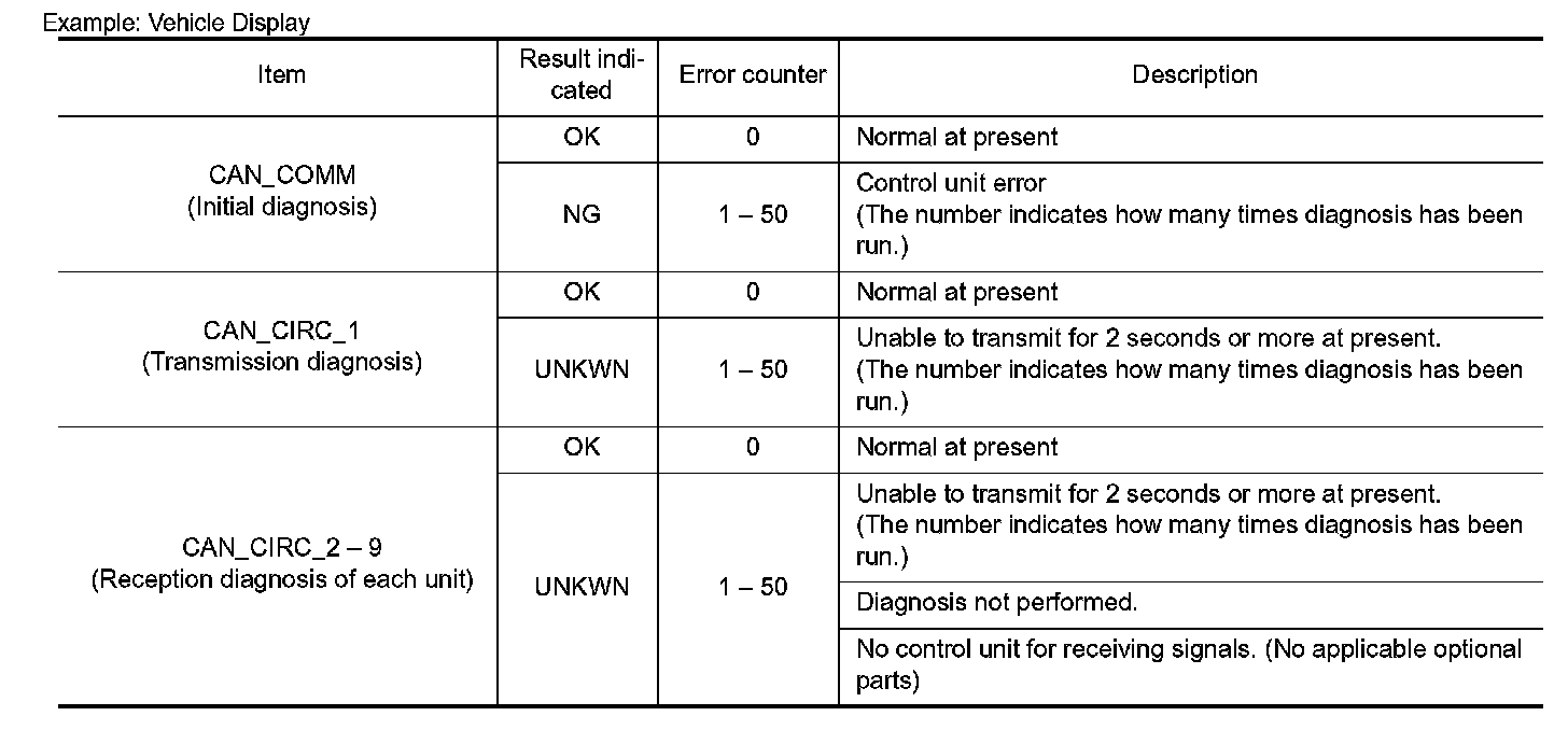 For some models, CAN communication diagnosis result is received from the vehicle monitor.
