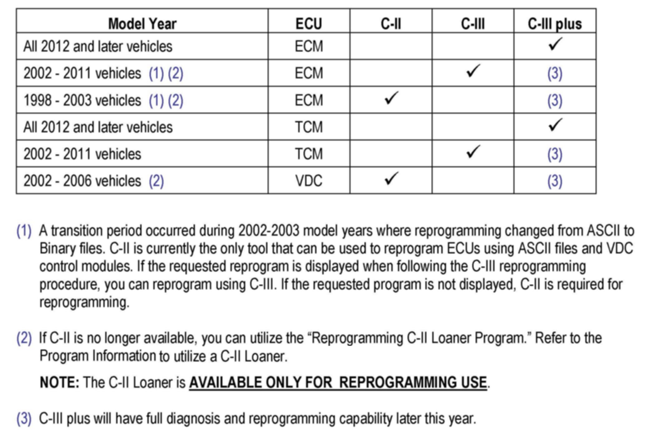 ^ Dealerships must return the C-II Loaner immediately after the reprogramming is completed.