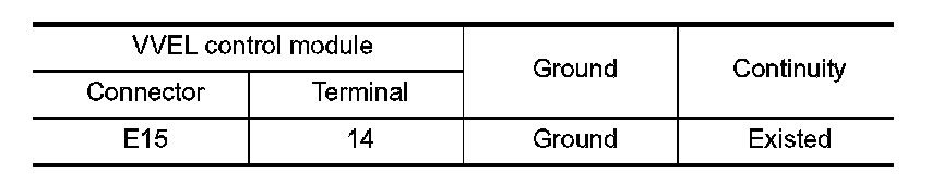 2. Check the continuity between VVEL control module harness connector and ground.