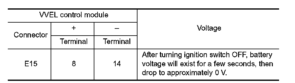3. Check the voltage between VVEL control module harness connector and ground.