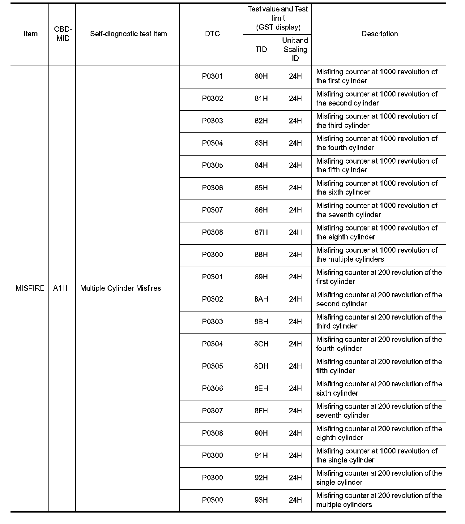 These data (test value and test limit) are specified by On Board Monitor ID (OBDMID), Test ID (TID), Unit and
