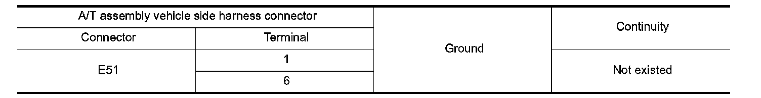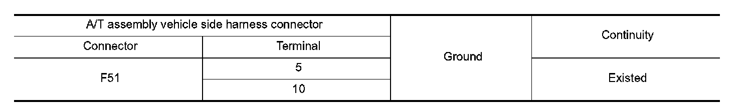 Check continuity between A/T assembly vehicle side harness connector terminal and ground.