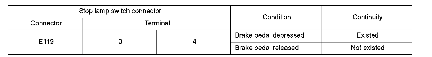 Check continuity between stop lamp switch connector terminals.