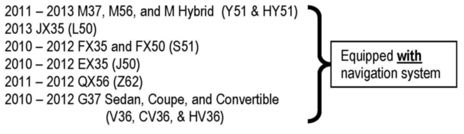 This bulletin has been amended. Several changes have been made to accommodate the addition of G37 and JX35 vehicles. Please discard previous versions of this bulletin.