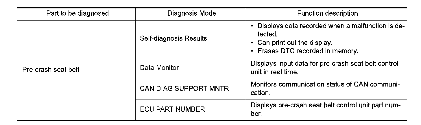 DIAGNOSIS SYSTEM (PRE-CRASH SEAT BELT)