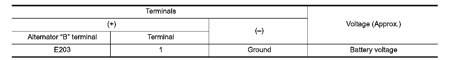 2. Check voltage between battery positive terminal and alternator "B" terminal.