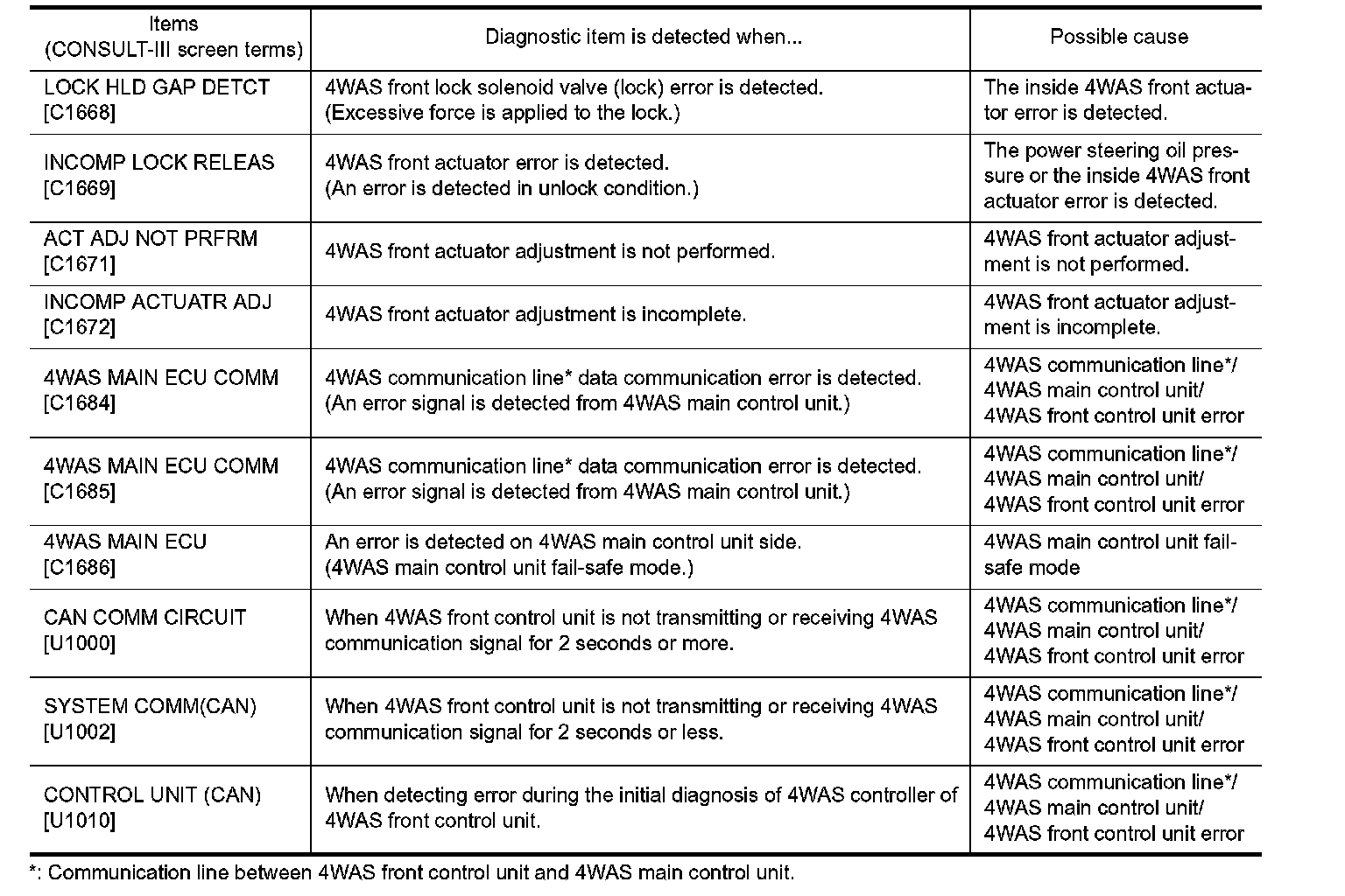 DIAGNOSIS SYSTEM (4WAS FRONT CONTROL UNIT)