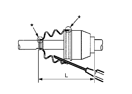 If grease adheres to the boot mounting surface (with "*" mark) on the shaft or joint sub-assembly, boot may come off. Remove all grease from the surface.