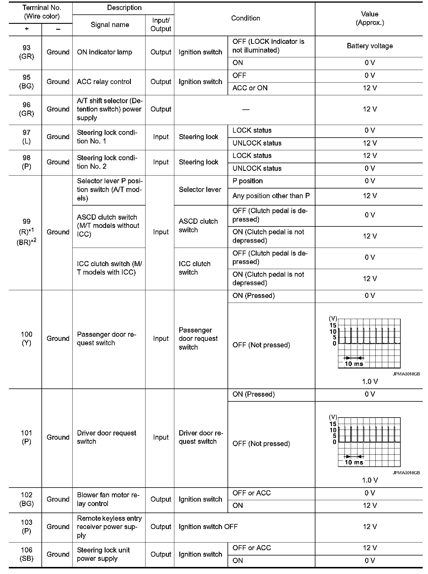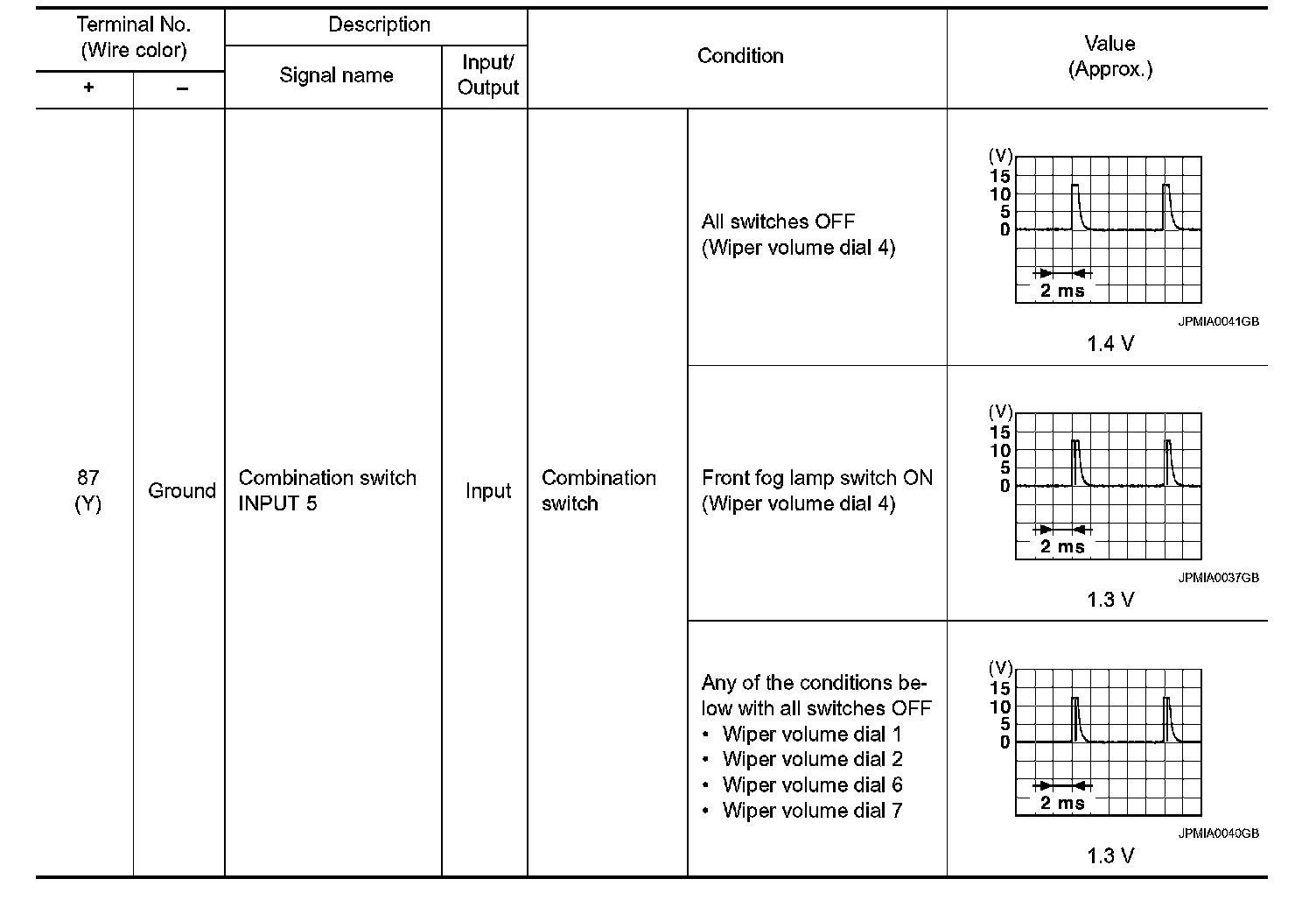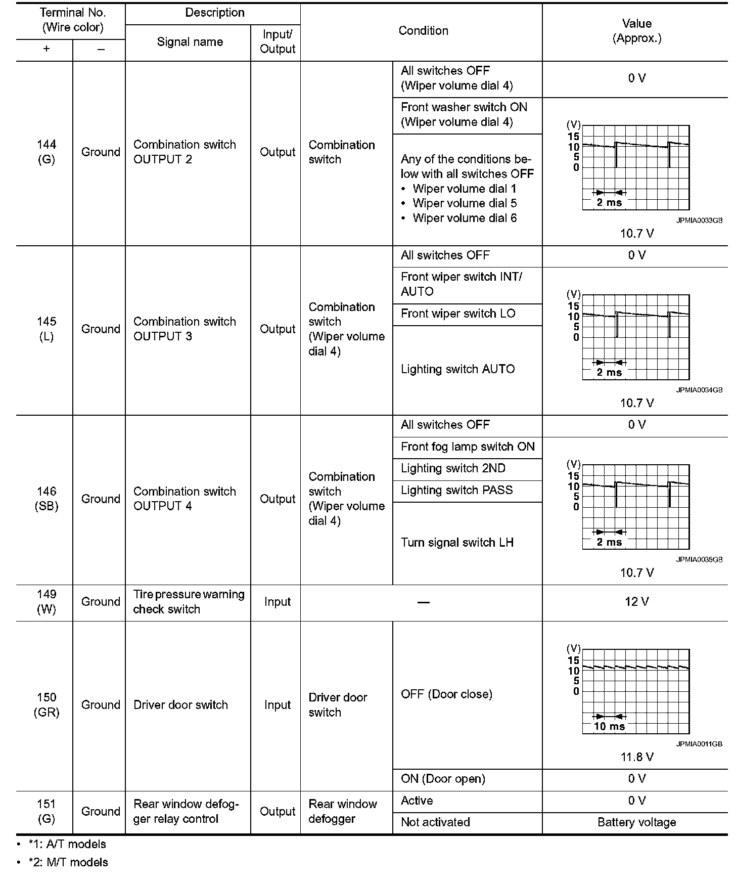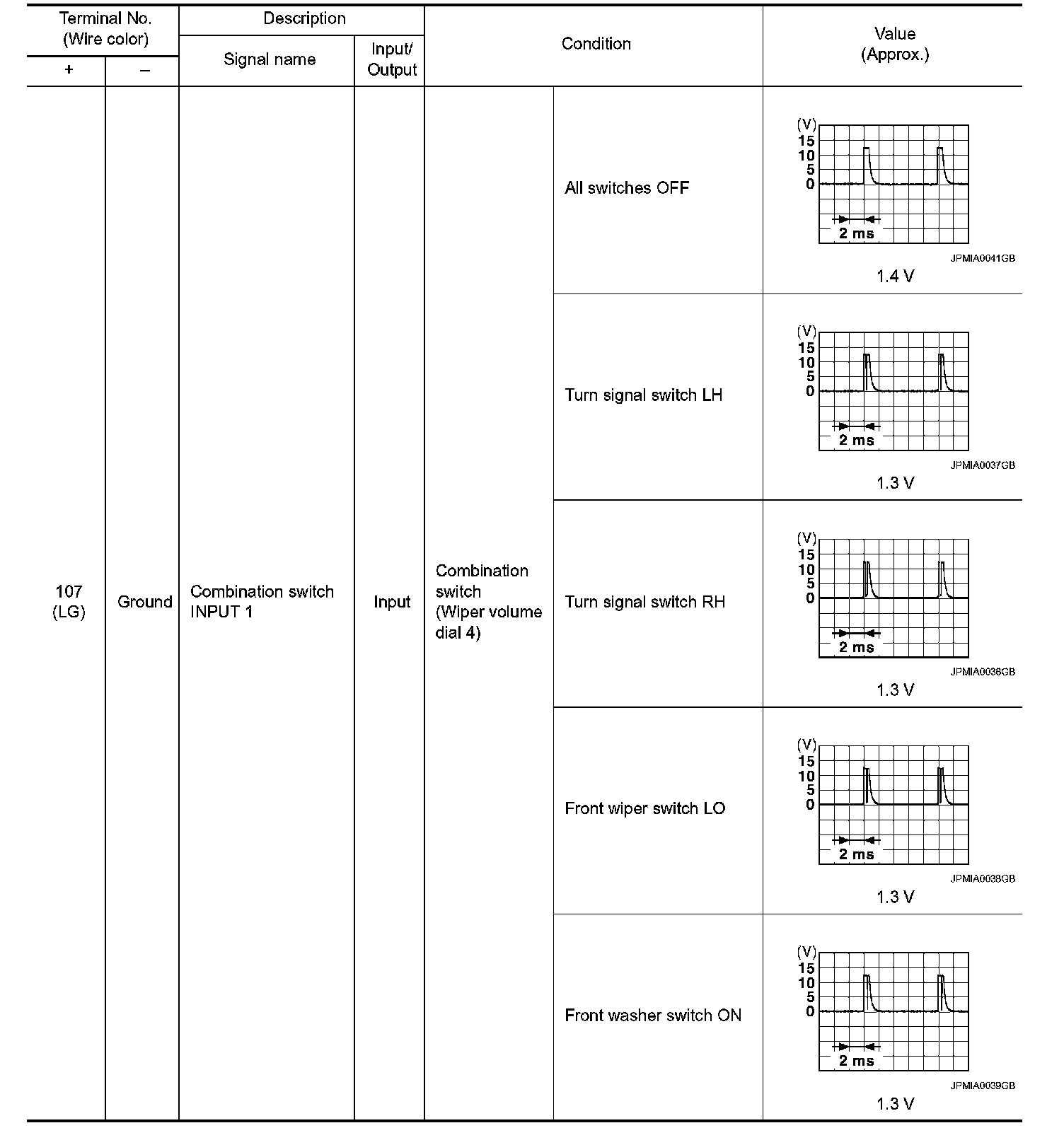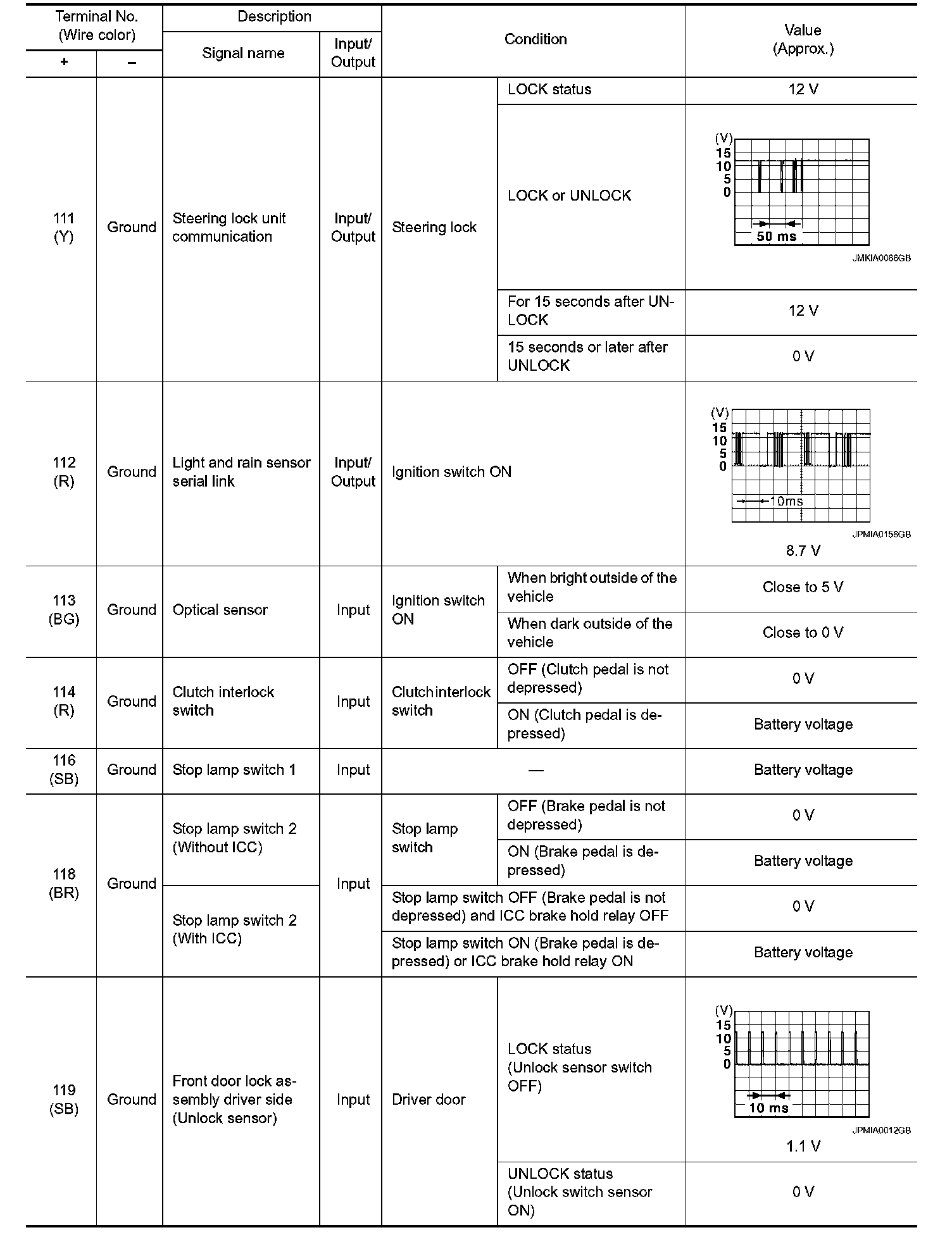 Pinout Values and Diagnostic Parameters