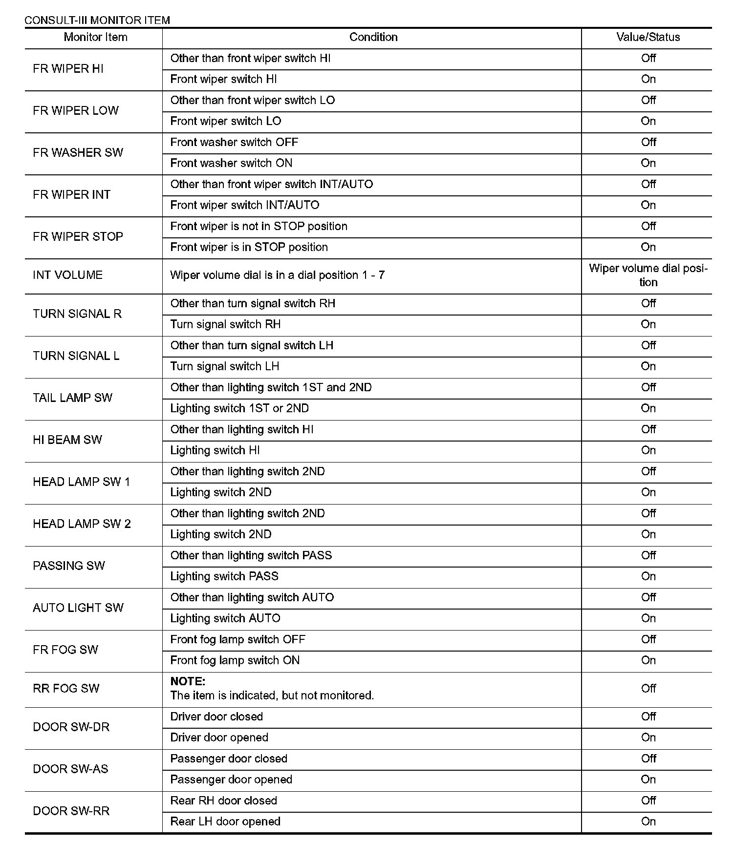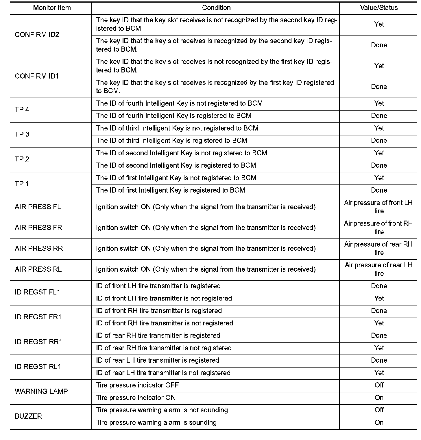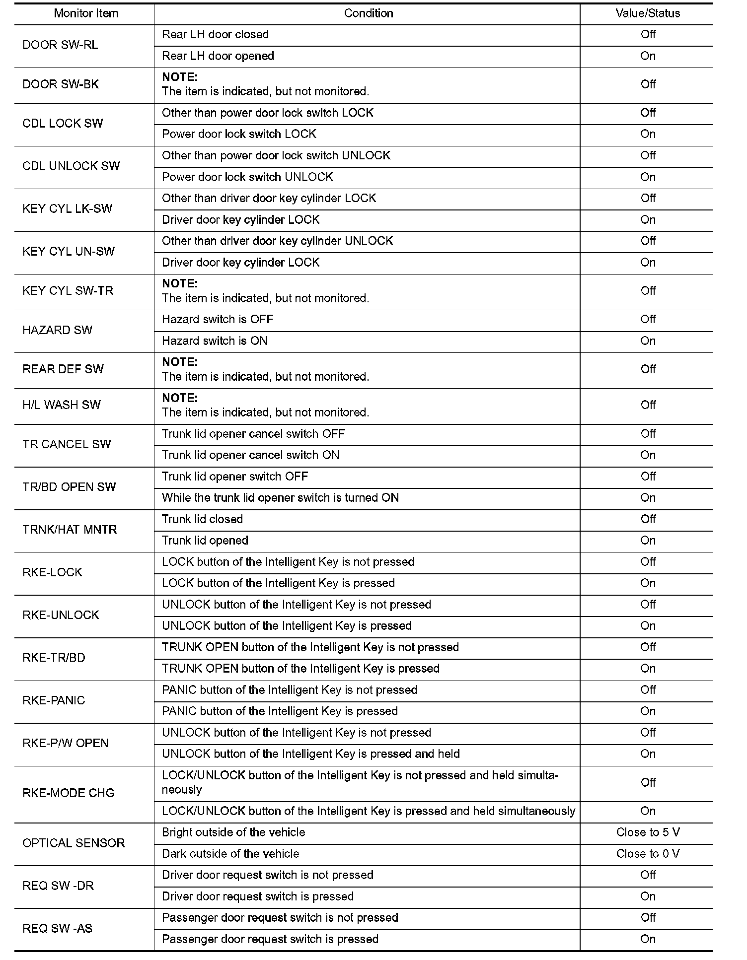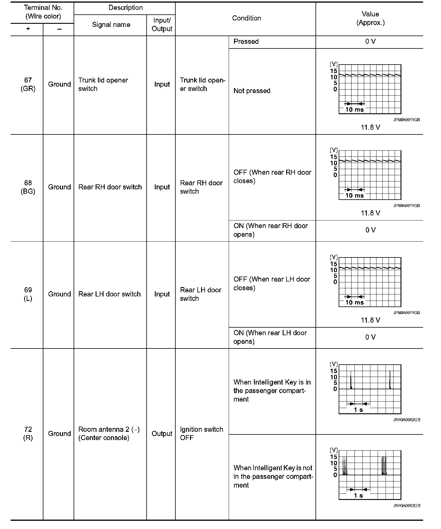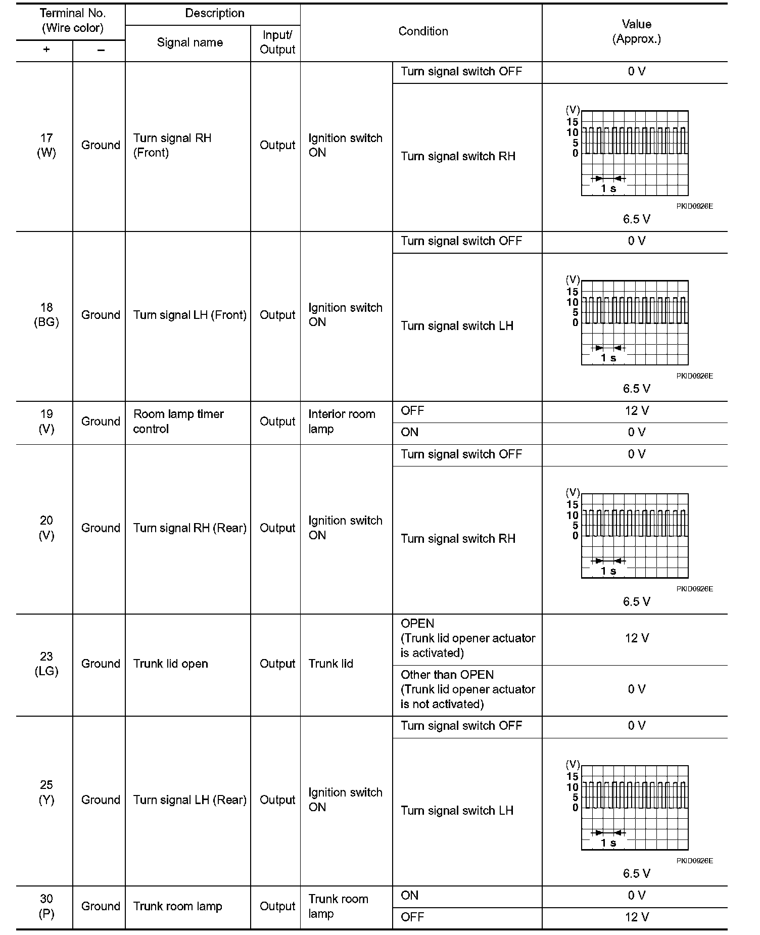 Pinout Values and Diagnostic Parameters