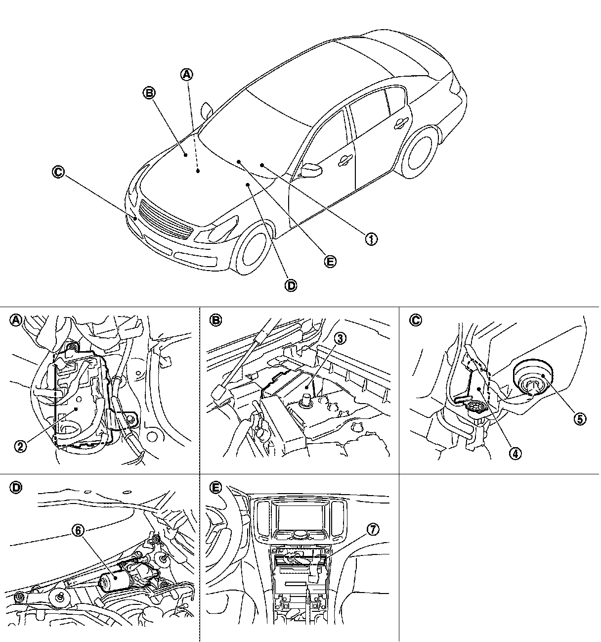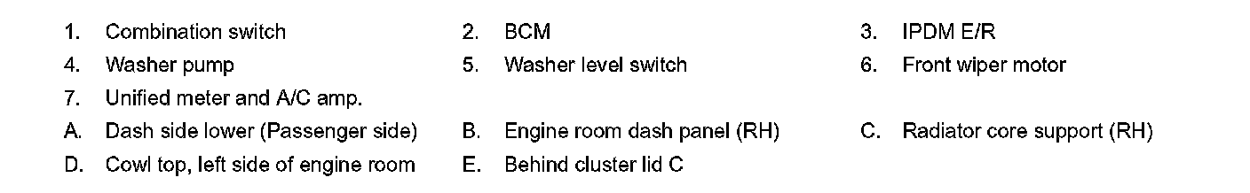 WITHOUT RAIN SENSOR : Component Parts Location