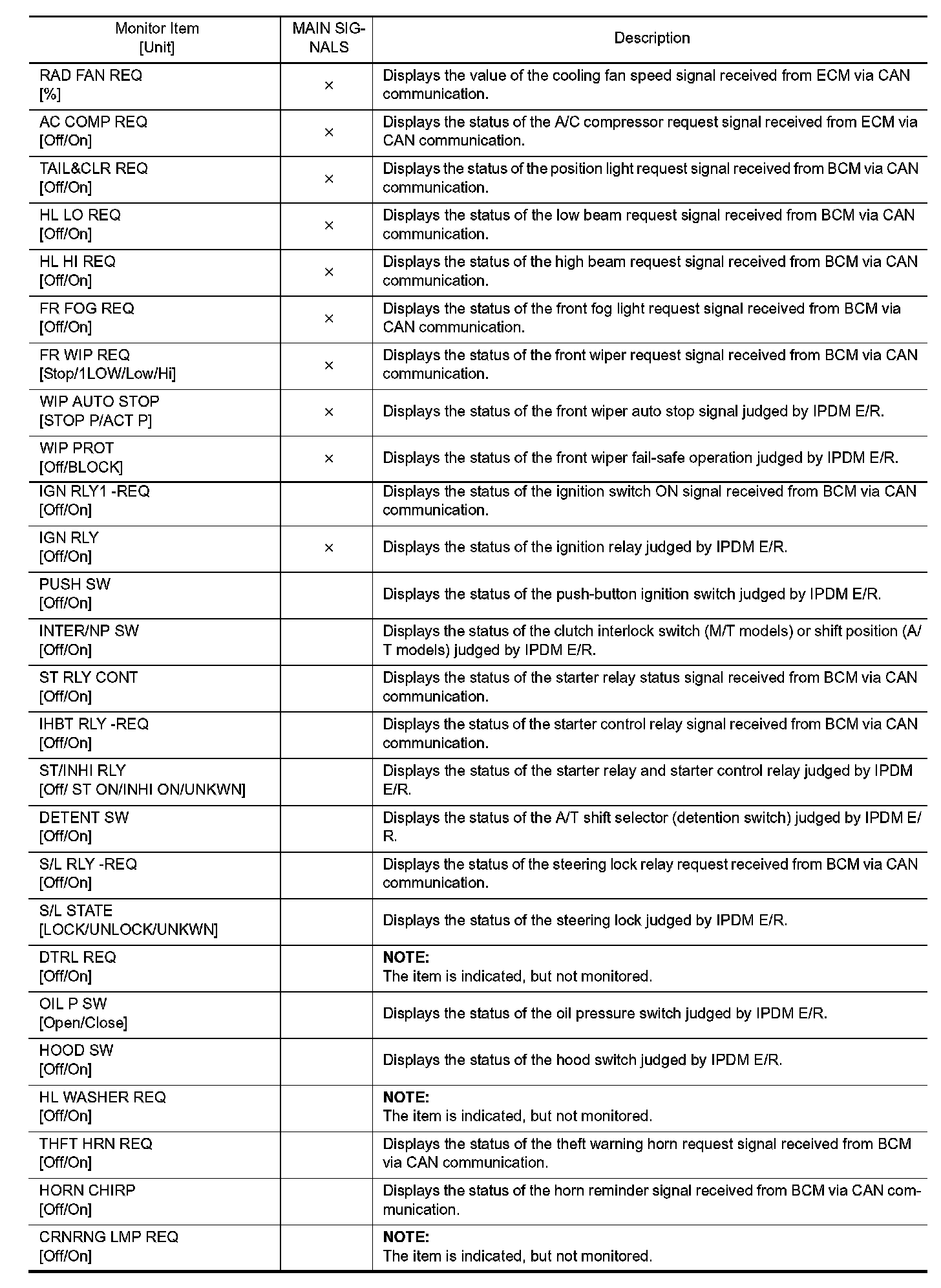CONSULT-III performs the following functions via CAN communication with IPDM E/R.