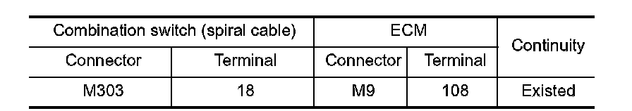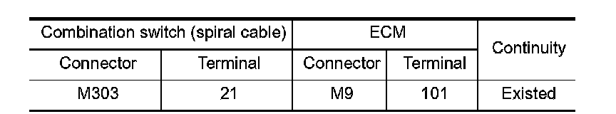 - Harness for open and short between ECM and combination switch (spiral cable)