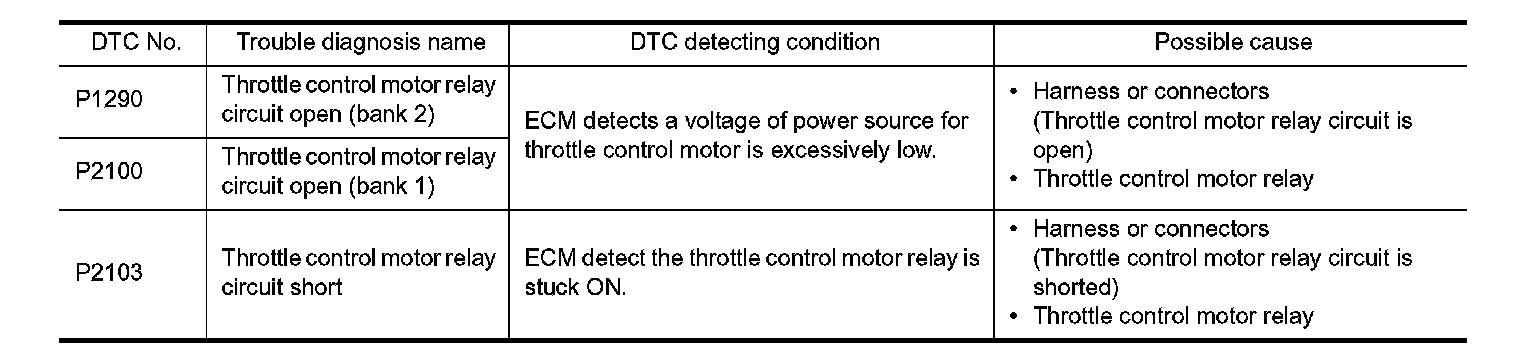 P1290, P2100, P2103 THROTTLE CONTROL MOTOR RELAY