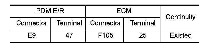 4. Check the continuity between IPDM E/R harness connector and ECM harness connector.