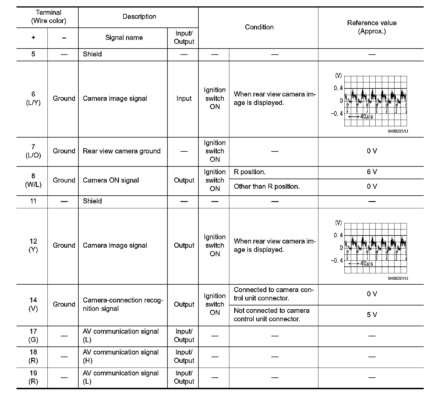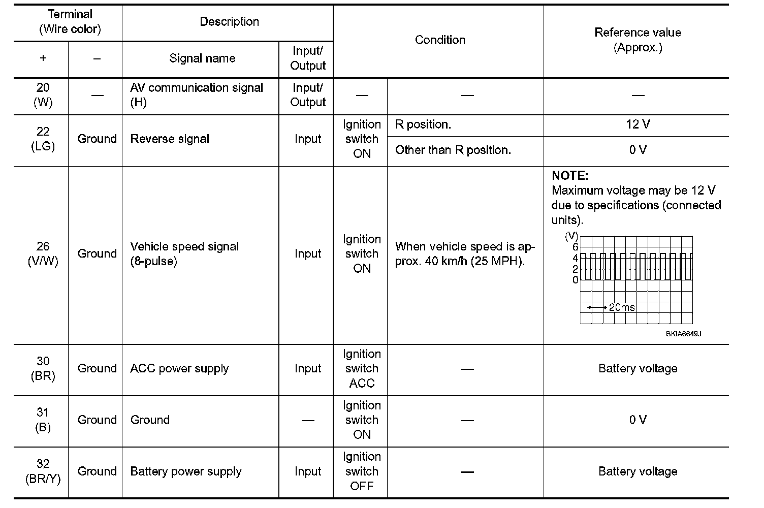 Pinout Values and Diagnostic Parameters