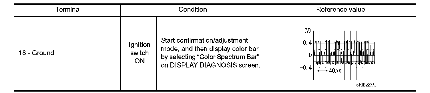 3. Check signal between front display unit harness connector terminal 18 and ground.