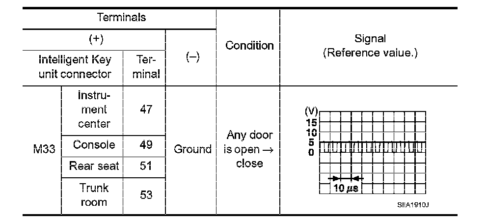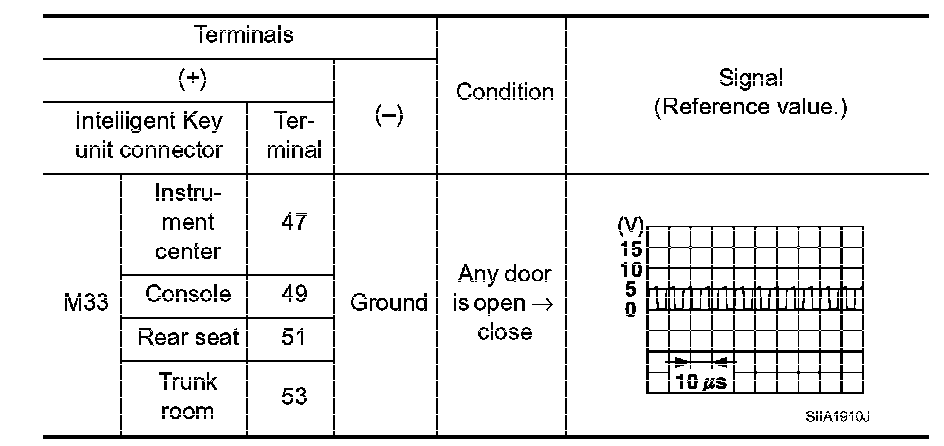 3. Check signal between Intelligent Key unit connector and ground with oscilloscope.